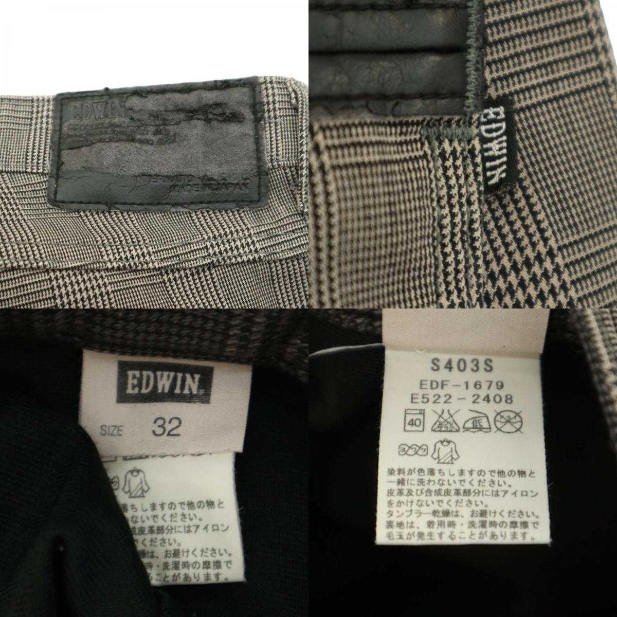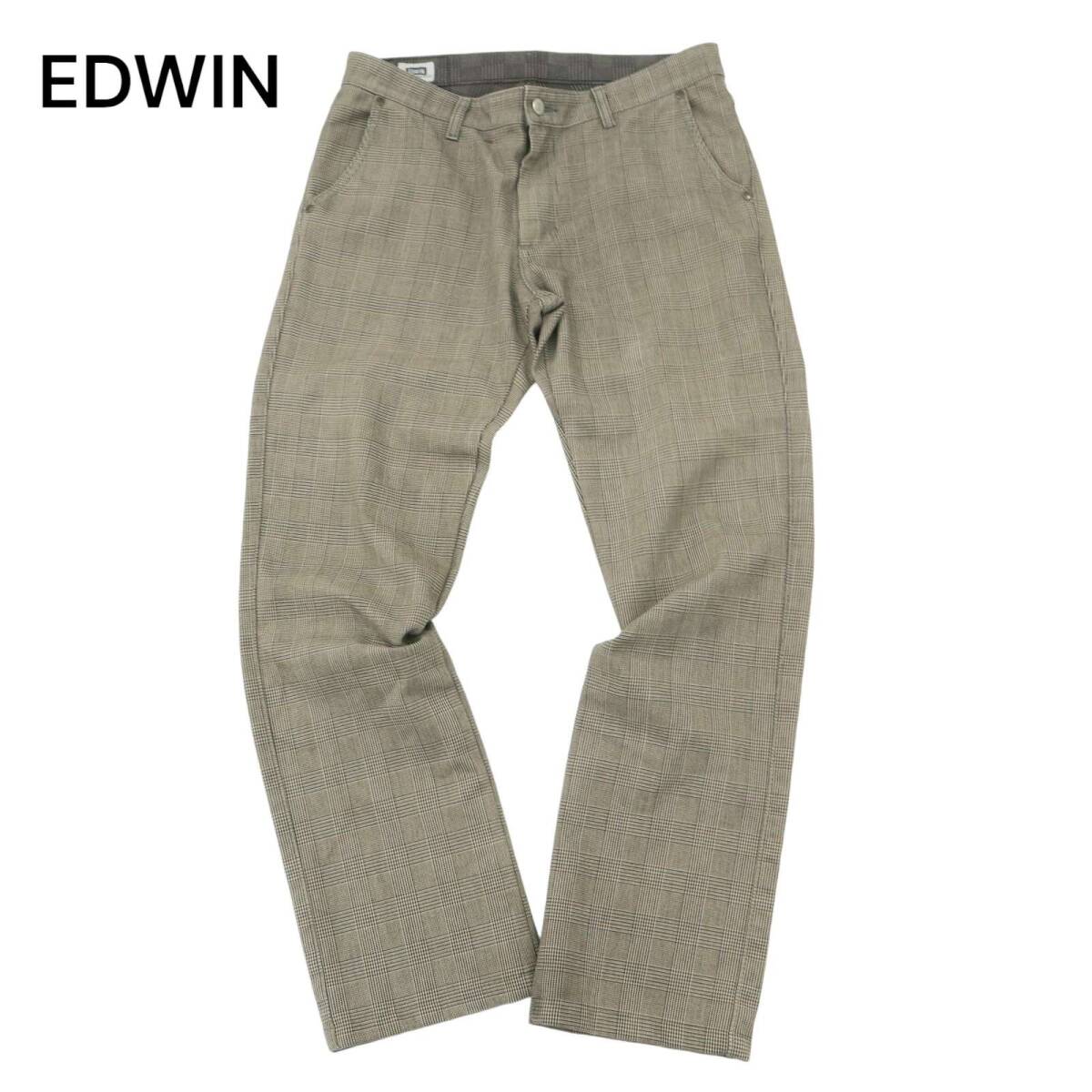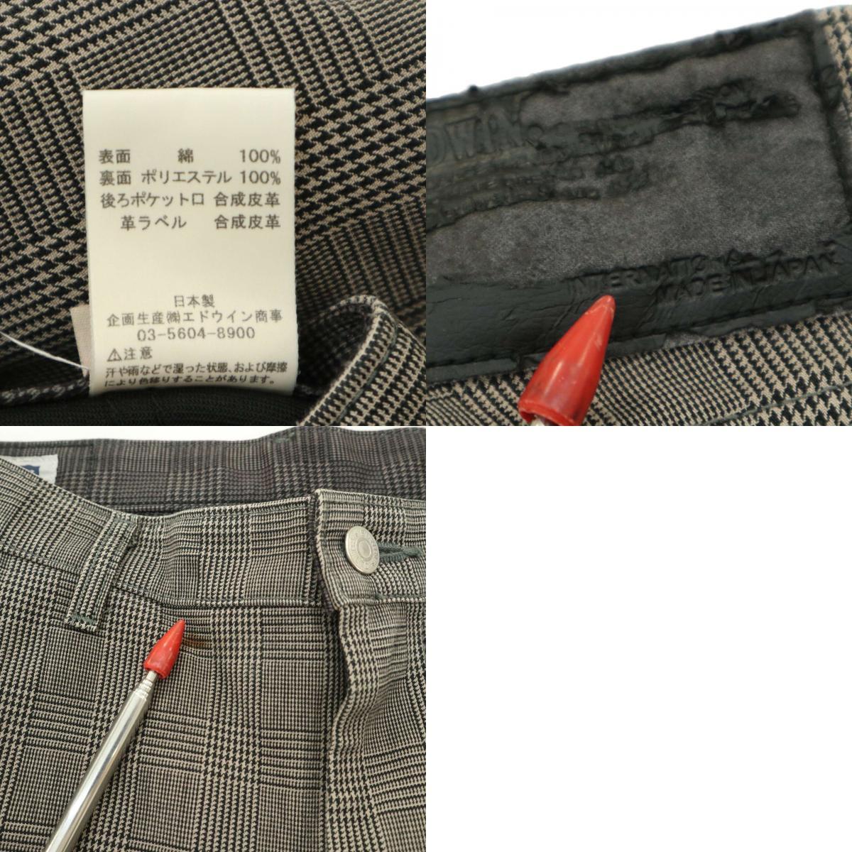 EDWIN エドウィン S403S 裏起毛★ グレンチェック ワーク パンツ Sz.32 メンズ グレー 日本製