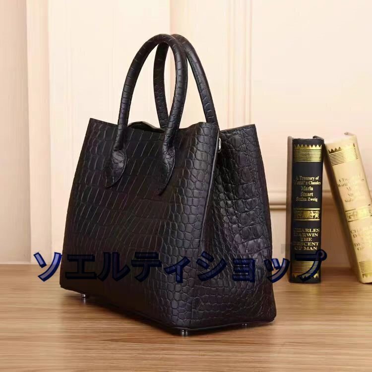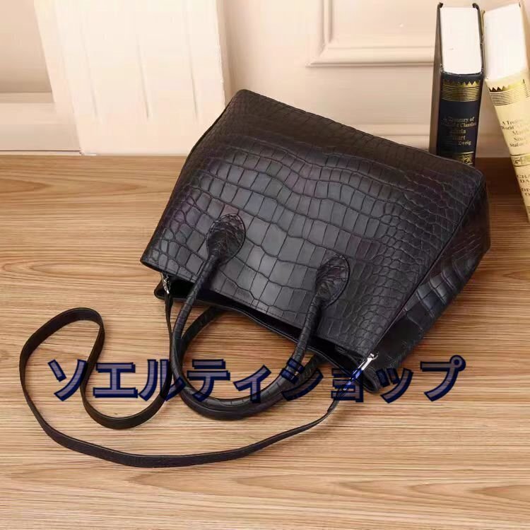 マット仕上げ 高級感 センター取り ワニ革 レディースバッグ ハンドバッグ クロコダイル 本革 2WAY トートバッグ 手提げ ショルダーバッグ