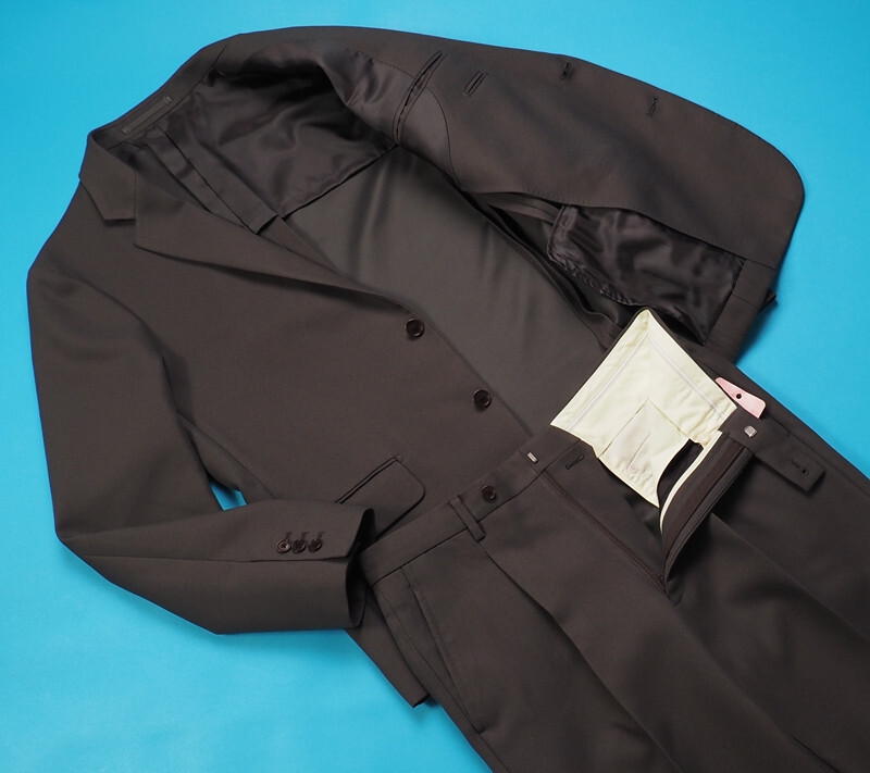 新品定価14.3万円 オンワード樫山 日本製 秋冬『Tollegno トレーニョ 伊製生地』ガルゼ ソリッド無地 スーツD648(A6)緑 835058