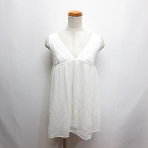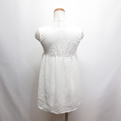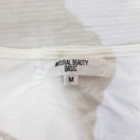 ナチュラルビューティーベーシック NATURAL BEAUTY BASIC ノースリーブ カットソー チュニック M オフホワイト 切替えシフォン 裏地付き レディース