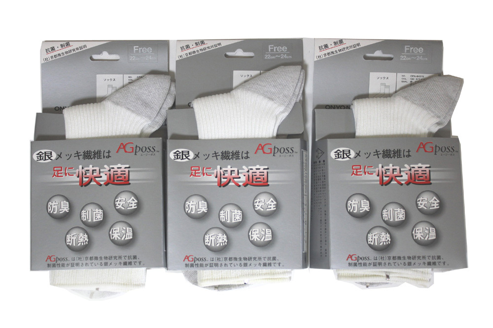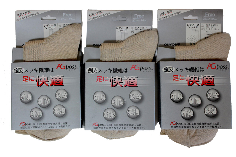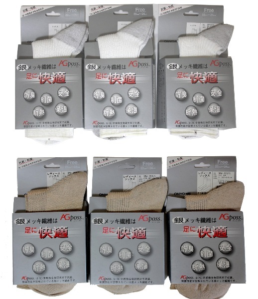 銀イオン繊維ソックス サンド(162) & ホワイト(100)3足組x2セット