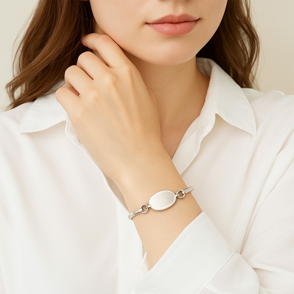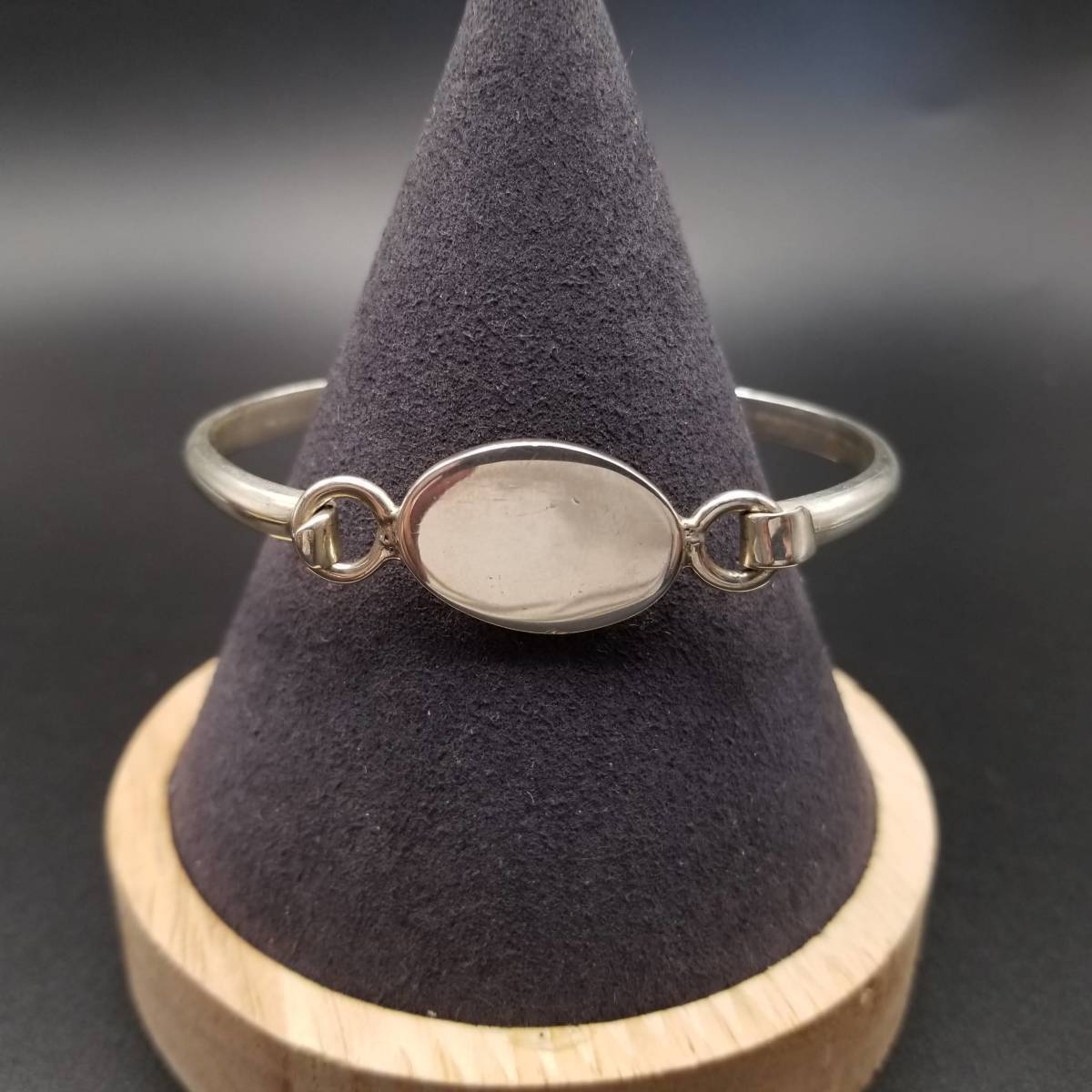 2004年 メキシコ 925 シルバー製 ヴィンテージ ブレスレット オーバル トップ 英国 London ホールマーク TAXCO産 シンプル 上品 Y6-P