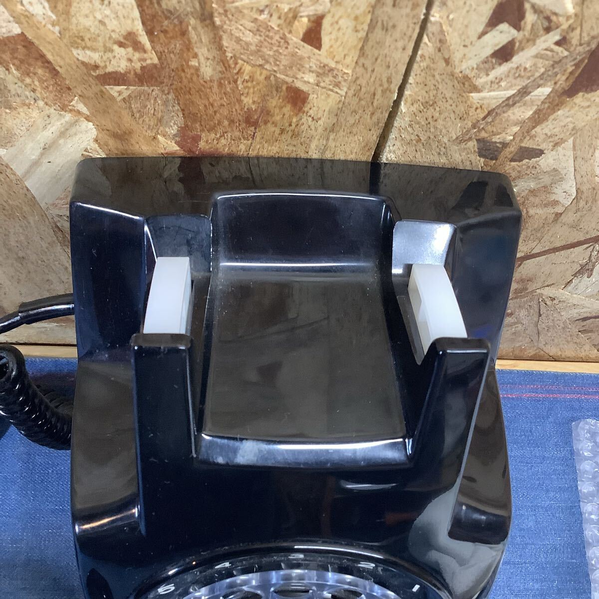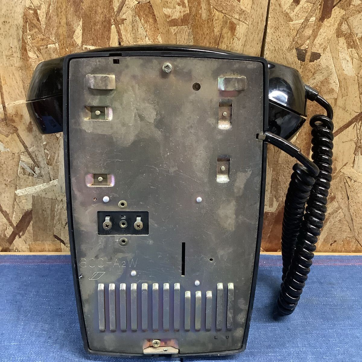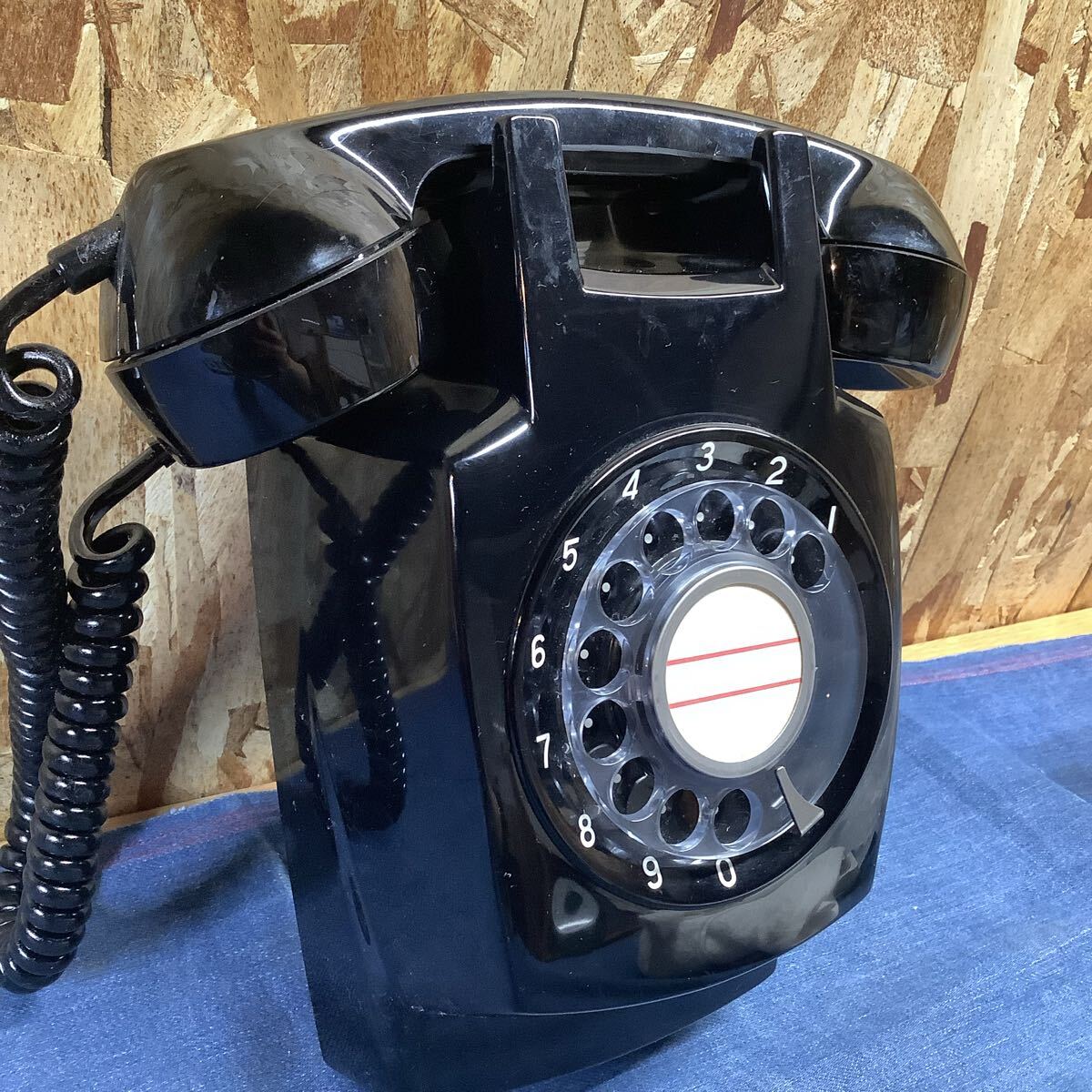 壁掛けタイプの黒電話ダイヤル式です。