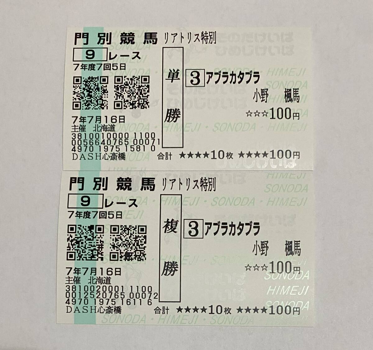 珍名馬券 アブラカタブラ リアトリス特別(C3) 場外単・複2点セット