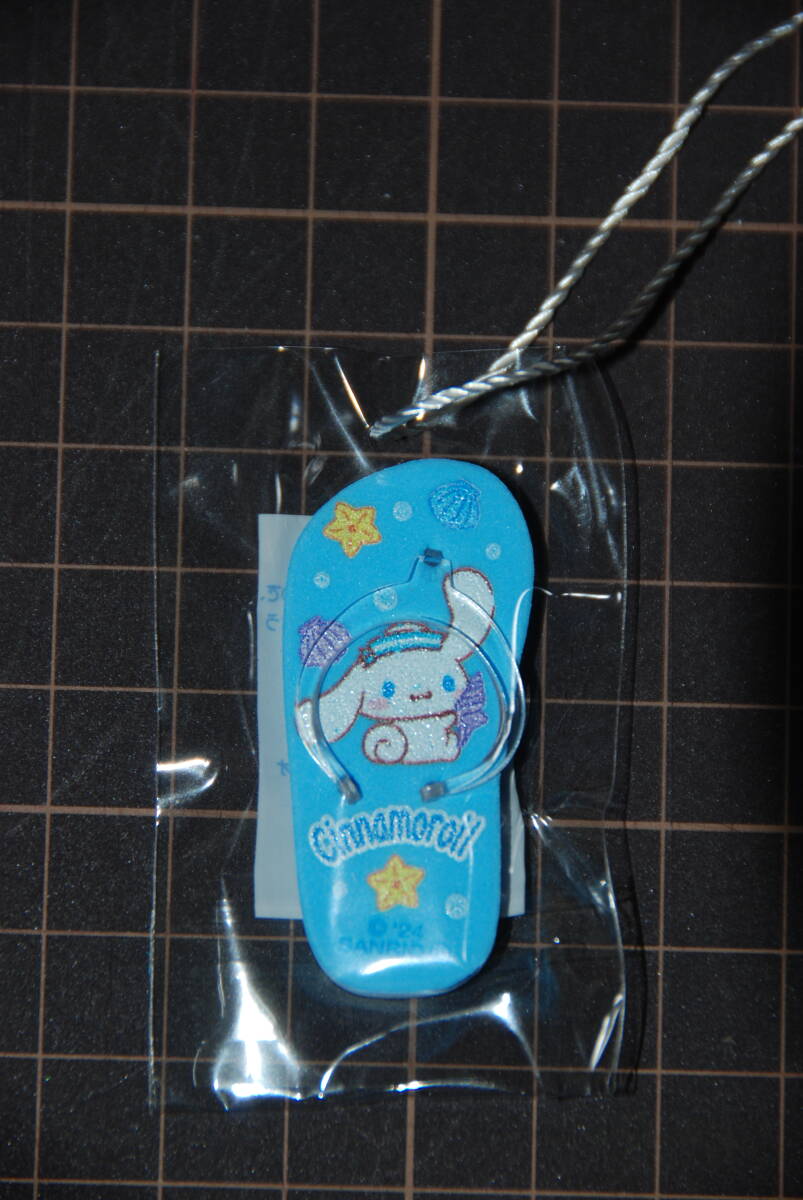 サンリオショップで商品を購入した際に付けてもらえるプレミアムです。 夏らしいミニサンダル、シナモンだけの5個セットです。 画像では見づらいですが、透明の鼻緒が付いています。 左足用のみで、右足用はありません。 おおよその大きさは縦4.5cm×幅2cmです。 |
