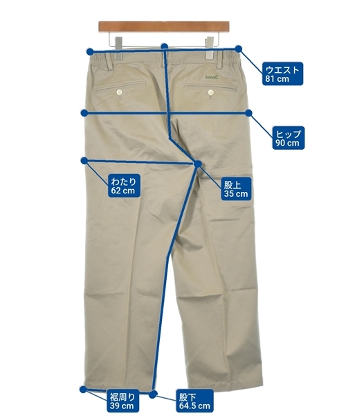 | ウエスト:81cm,裾周り:39cm,ヒップ:90cm,わたり:62cm,股上:35cm,股下:64.5cm |