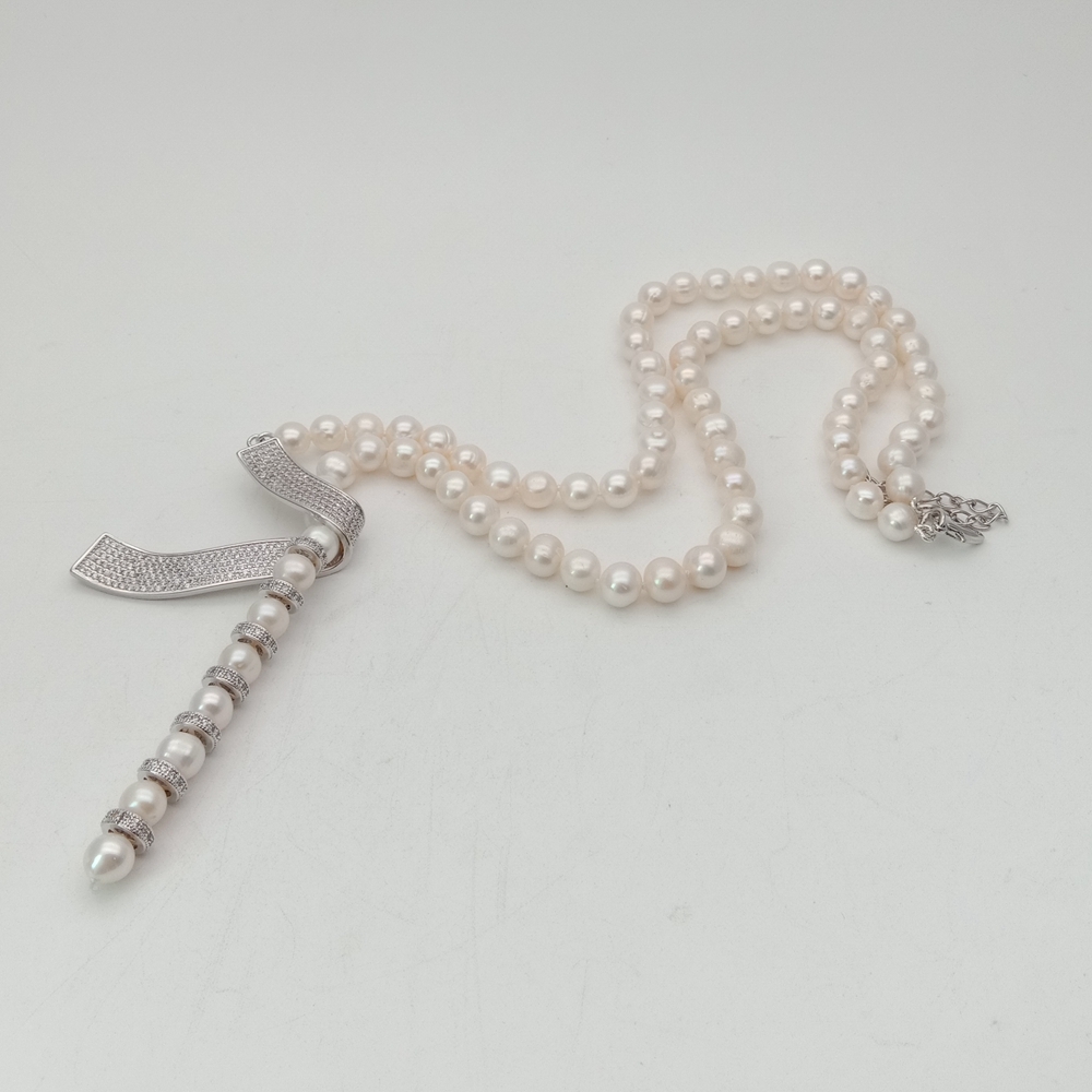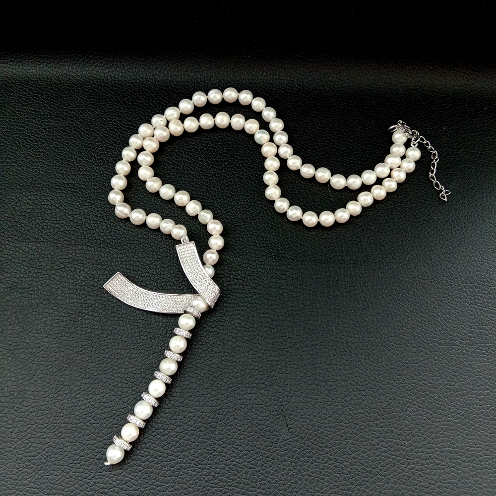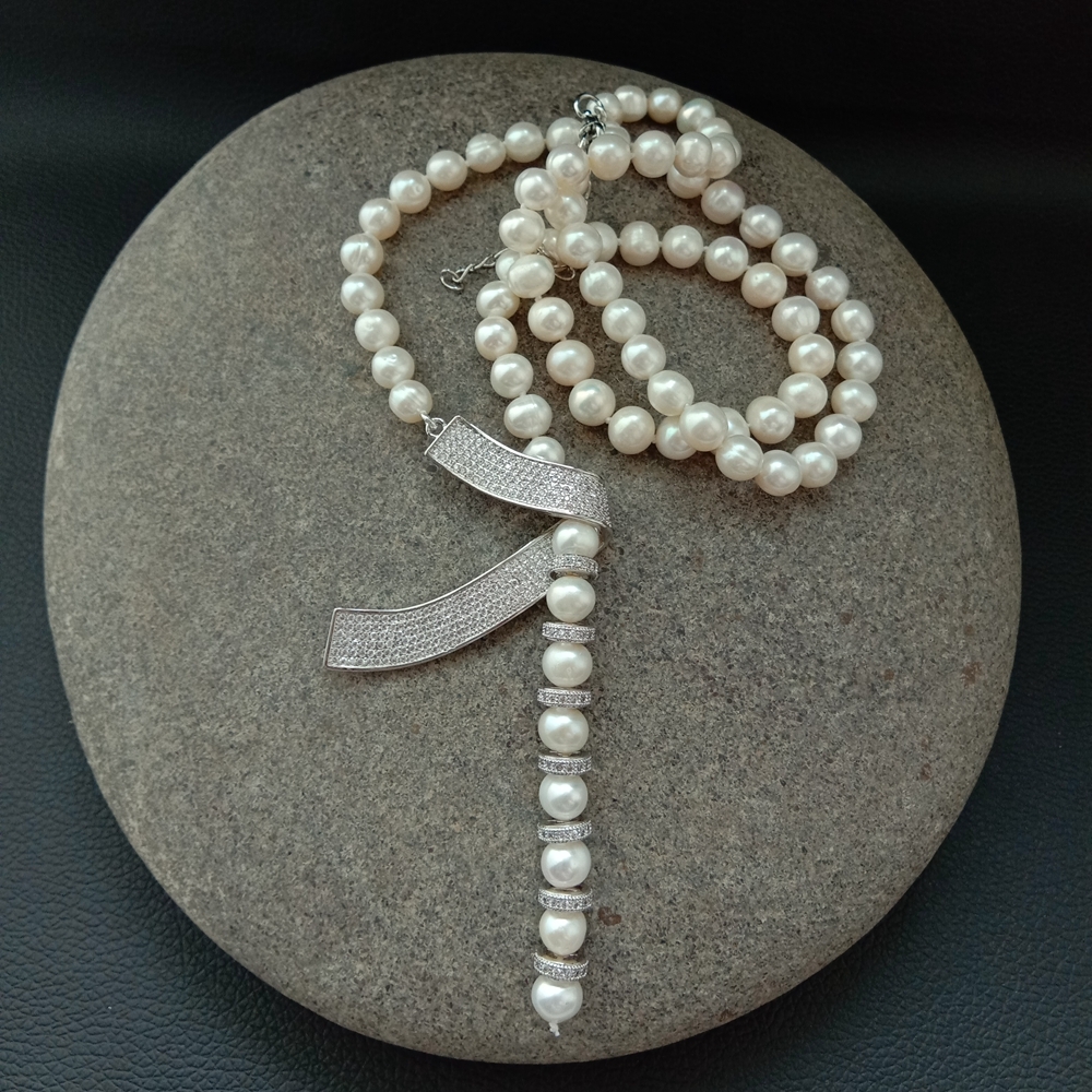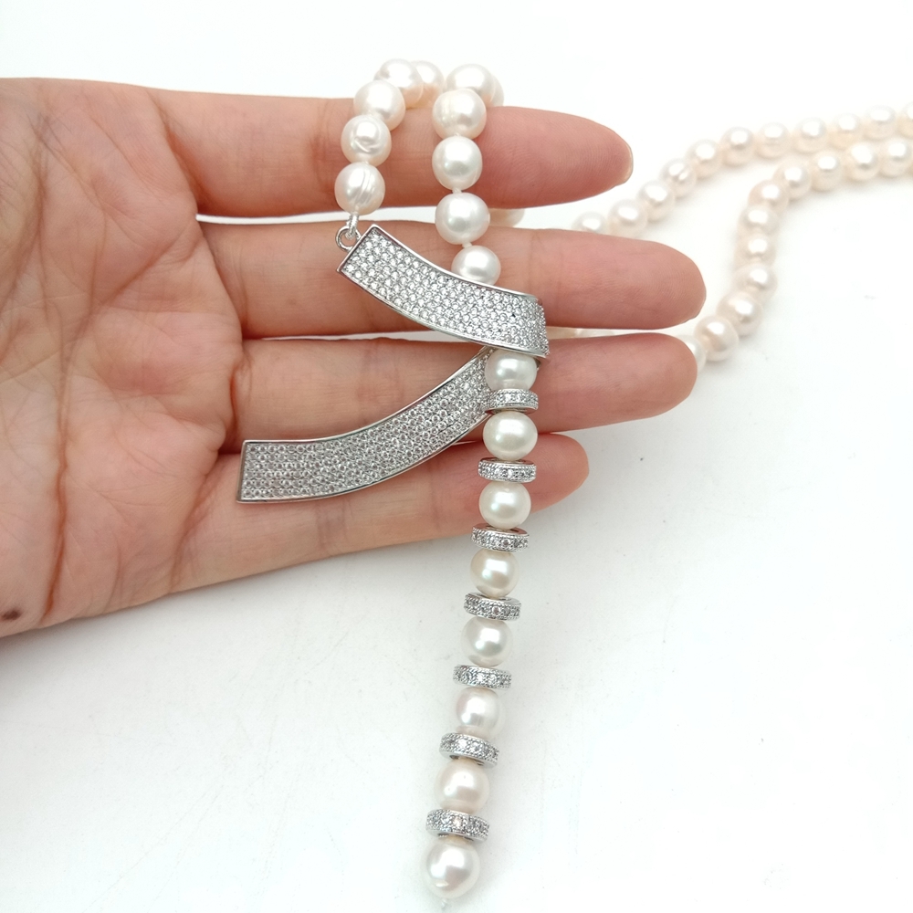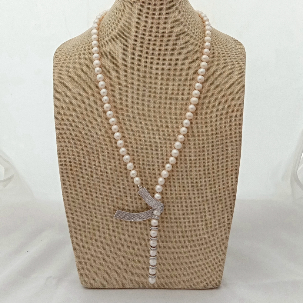 <新品>ホワイト 淡水養殖 パール 真珠 キュービックジルコニア ネックレス 24インチ 結婚式 ダンス パーティー プレゼント