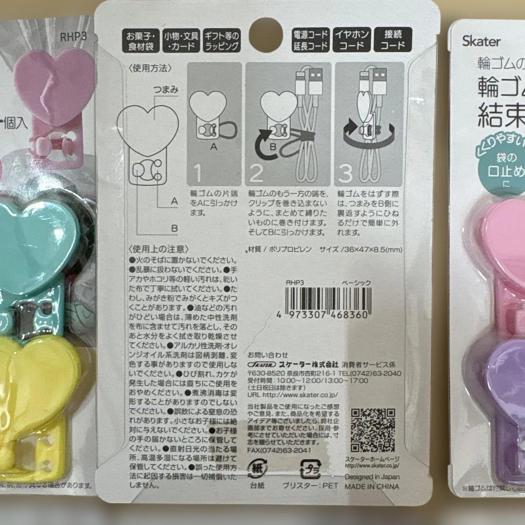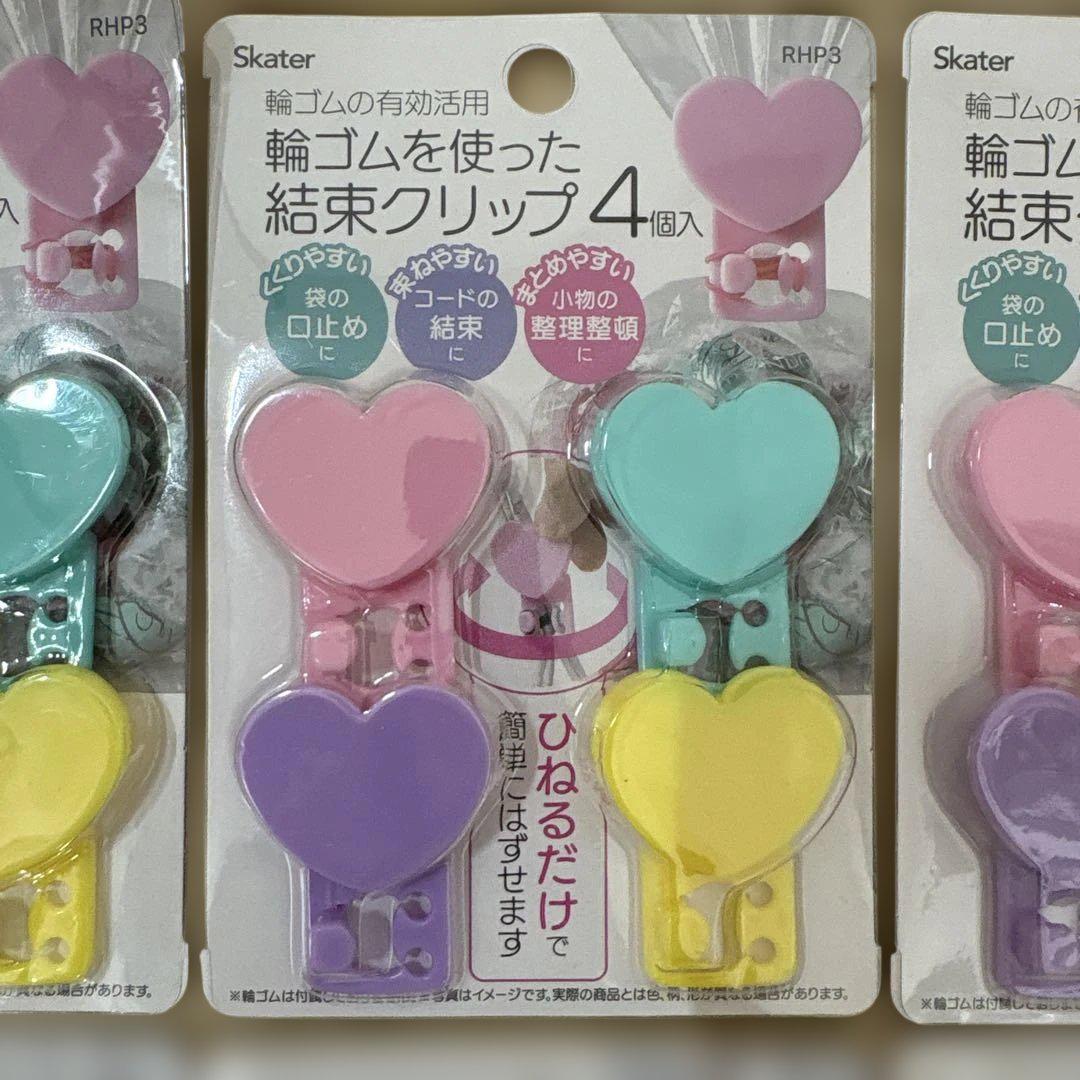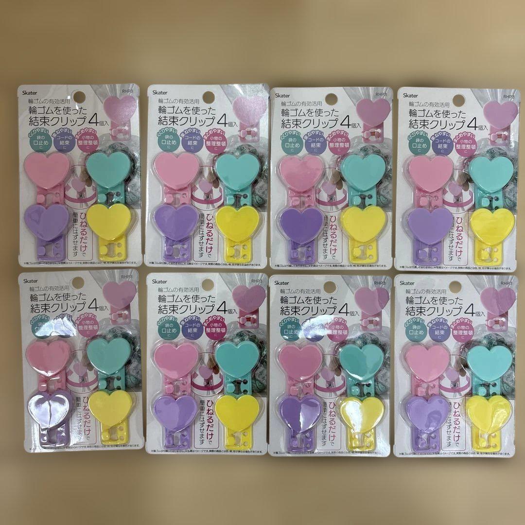 ハート型デザインの輪ゴムクリップ4個セット。