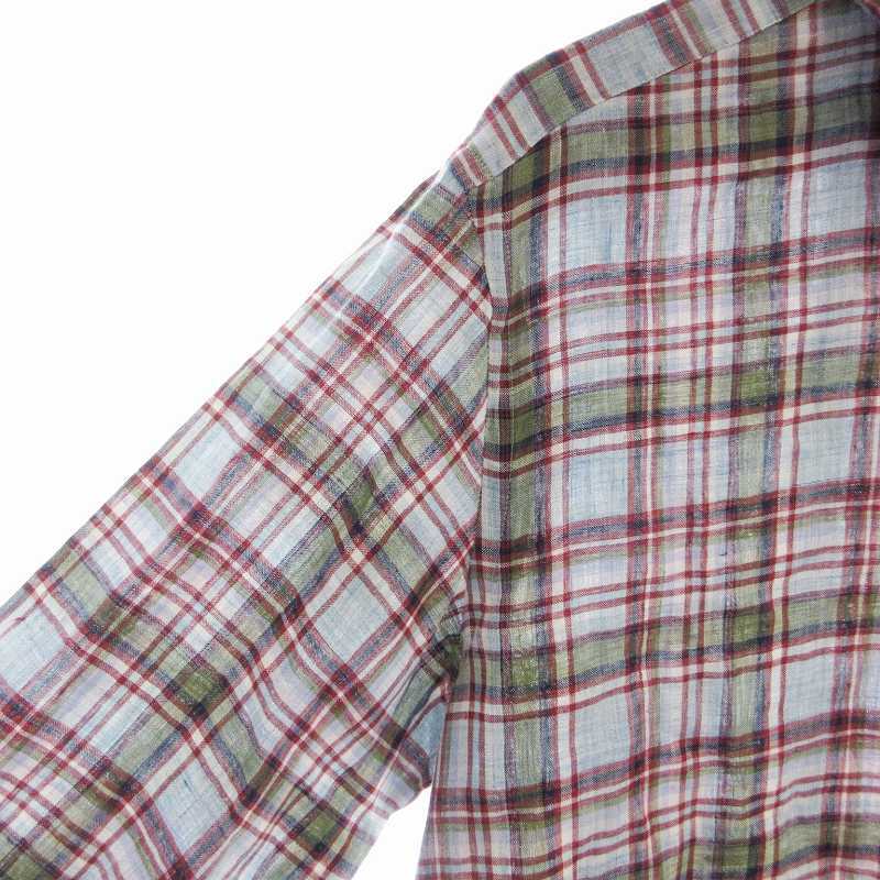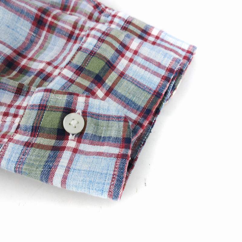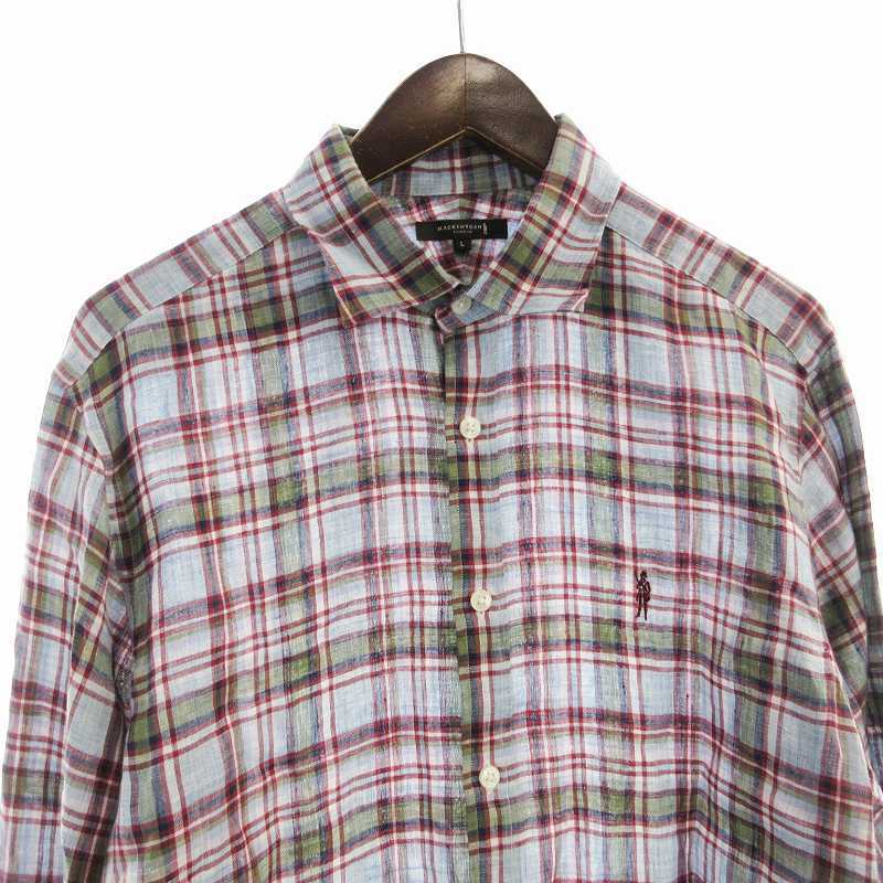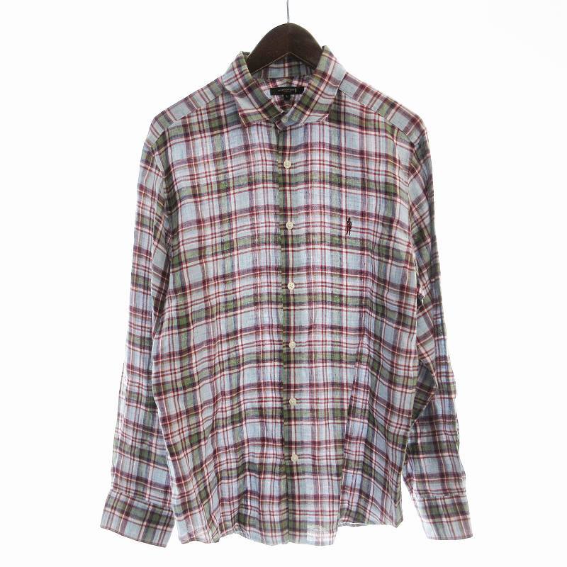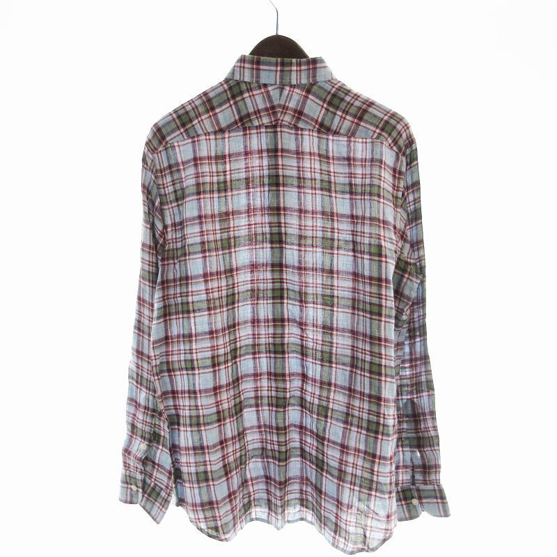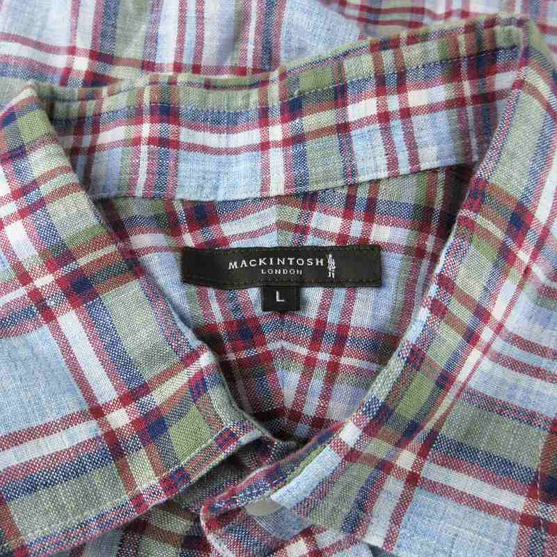 マッキントッシュ ロンドン MACKINTOSH LONDON カジュアルシャツ 長袖 チェック 麻 リネン L 水色 ライトブルー G1M21-117-17 /EE メンズ