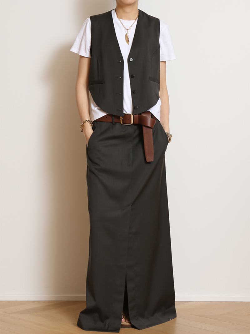 KALLMEYER Deuxieme Classe カルメイヤー ドゥーズィエムクラス取扱 24SS FRONT SLIT スカートUS2/36 セットアップのベスト有 アパルトモン