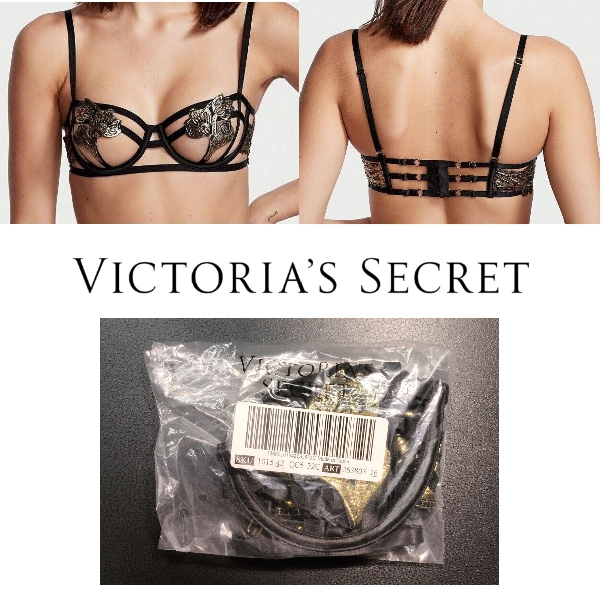 VICTORIA'S SECRET ヴィクトリアシークレット ストラッピーエンブロイダードバルコネットブラ ブラジャー 32C(C70相当、姉妹サイズB75,D65)