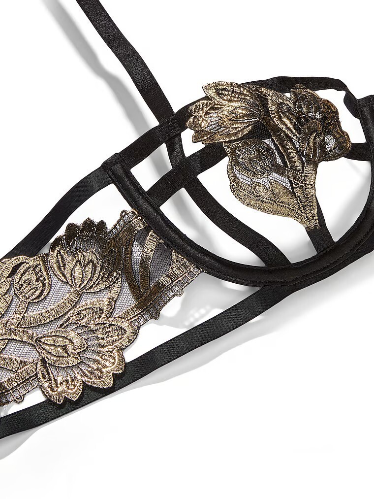 ストラッピー エンブロイダード バルコネット ブラ ブラジャー
