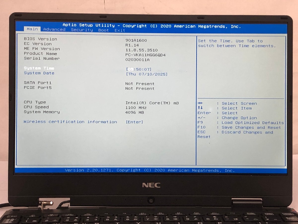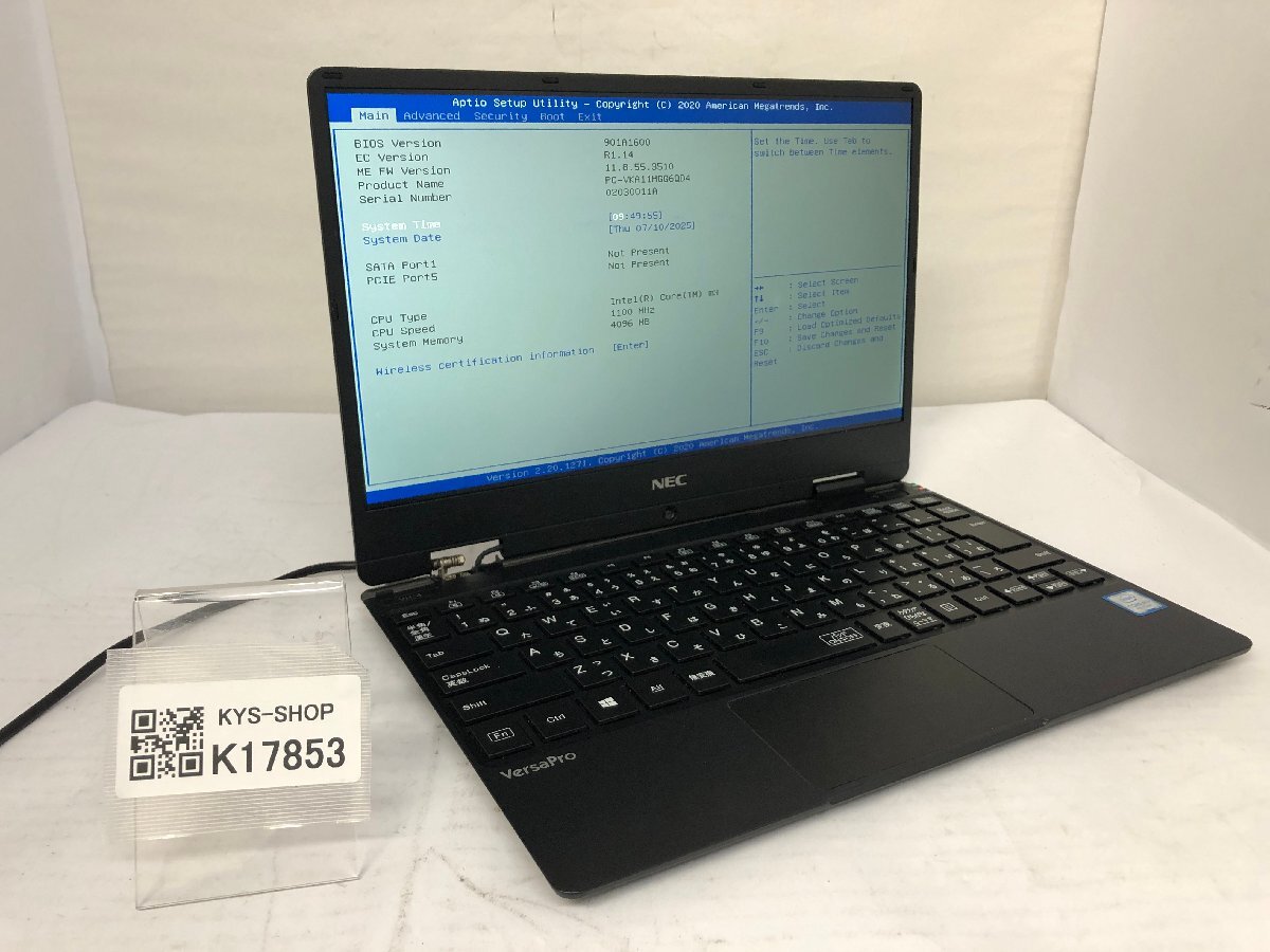 ジャンク/ NEC PC-VKA11HGG6QD4 Intel Core m3-8100Y メモリ4.1GB ストレージ無し 【K17853】