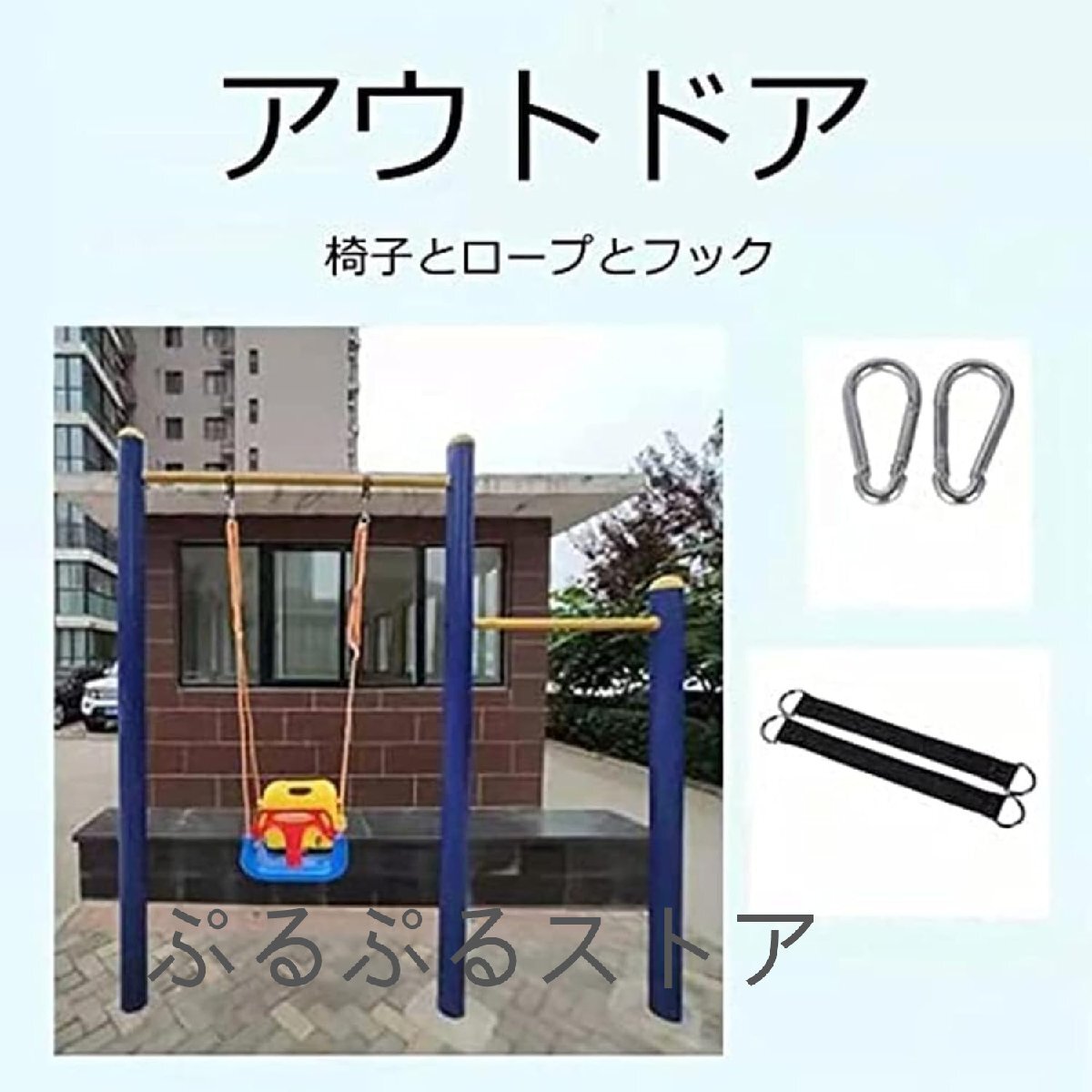 セット内容:ベンチ背もたれ、ブランコ椅子、ブランコロープ、ブランコベルト2本、登山用バックル2個