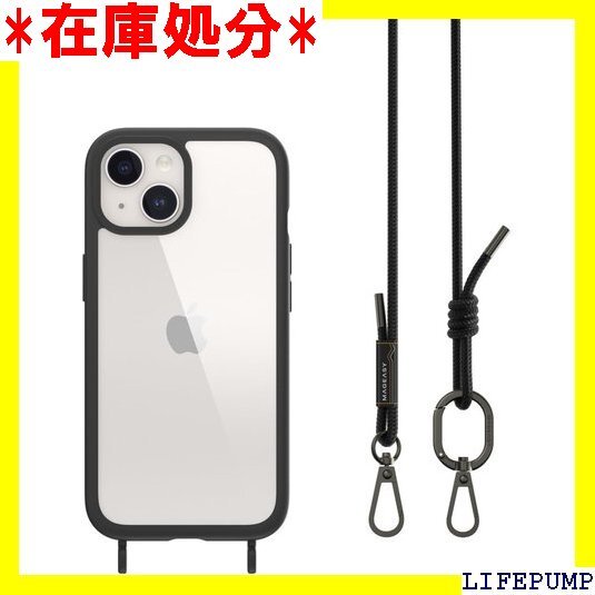 MagEasy iPhone15 対応 ケース 斜めがけ 首掛け 肩掛け スマホショルダー ストラップ 付/耐衝撃 米軍 MIL規格 クリア 耐衝撃ケース スマホストラップ 付 スマホケース Apple iPhone 15 アイフォン15 対応 携帯ケース ROAM+ ブラック 1136