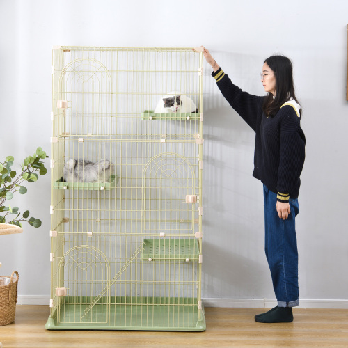 猫 ケージ キャットケージ 3段 猫ゲージ おしゃれ キャットハウス ネコ ハウス多段保護 脱走防止 多頭飼い 多頭 ペットケージ【グリーン】