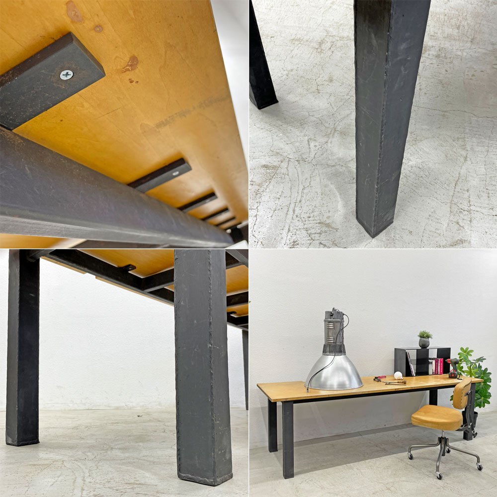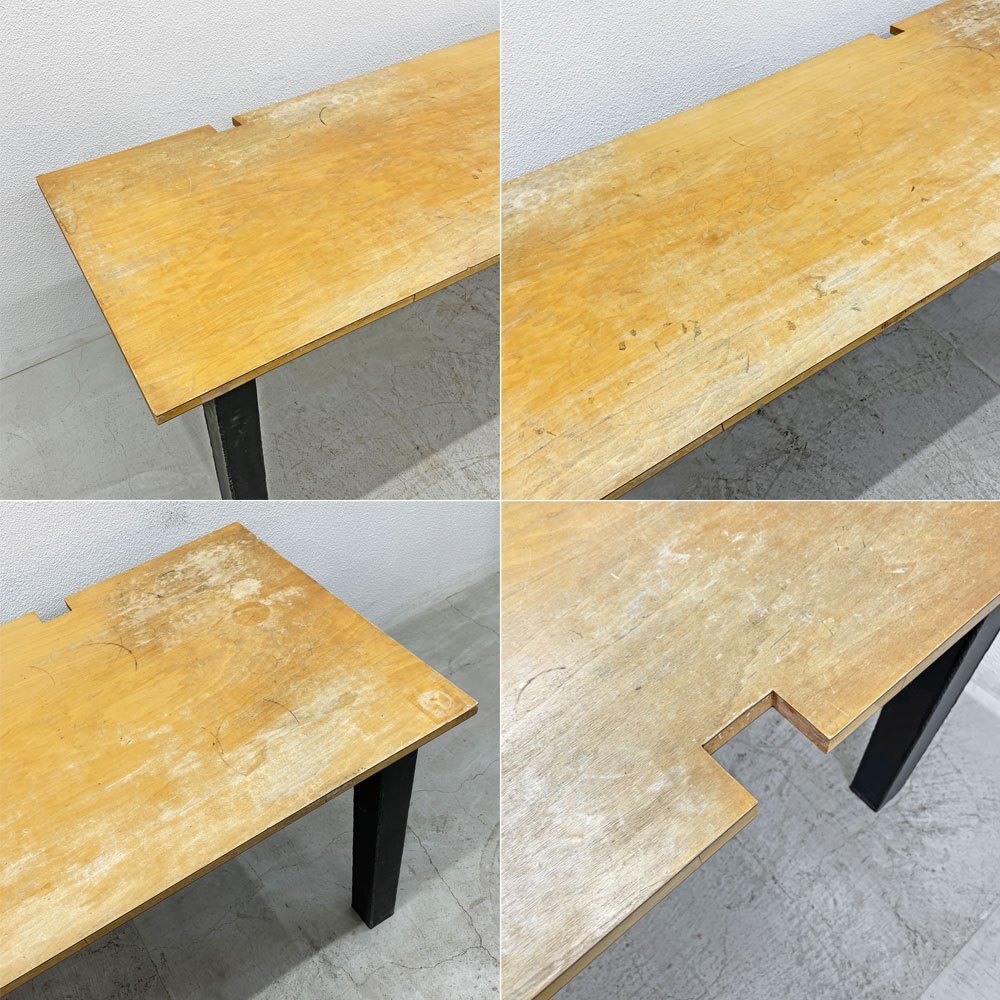 | コメント | 木製天板にアイアンのレッグフレームを組み合わせたラージサイズのワーキングテーブルが入荷致しました。 インダストリアルテイストの無骨な趣を持つ素材の組み合わせに、作業台として使用されていたであろうエイジングが独特な魅力を放ちます。 ガレージ・コンテナなどをコンセプトとした店舗什器として魅力的な風合いに、作業台として扱うのに適した幅240cm奥行80cmのビッグサイズ。 天板は木製ネジを取り外して簡単に交換頂けます。 沢山の物がテーブル上に散らかっていても気にならないビッグサイズで作業場にピッタリな一品です。 ※当ショップは、主にリサイクル品を取り扱っております。基本的にUSED品である事をご理解頂き、ご入札をご検討下さいませ。 |