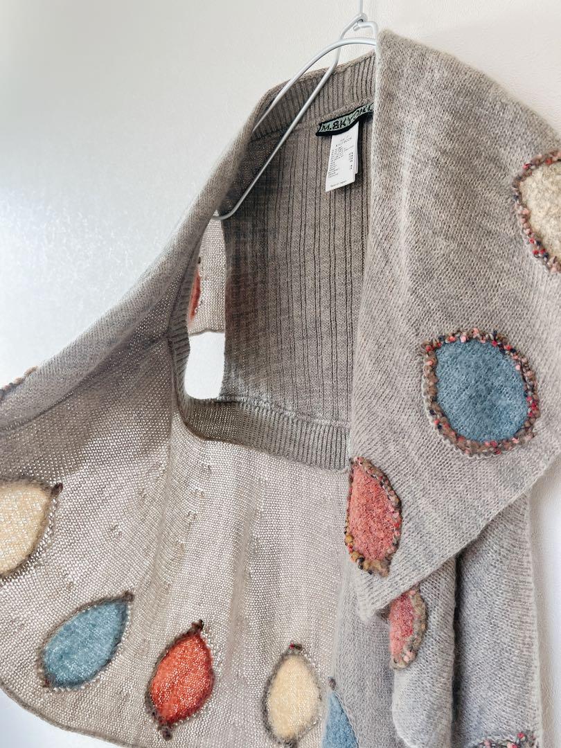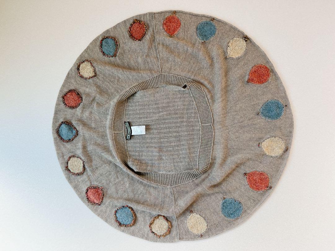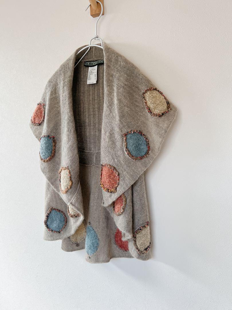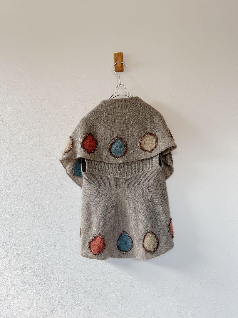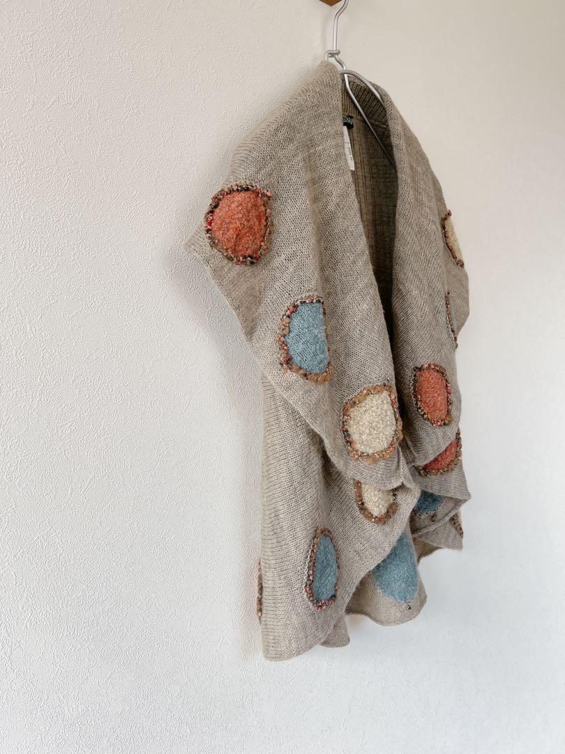 ショール襟とカラフルな丸の刺繍がとってもかわいい、ニットベストカーディガンです。