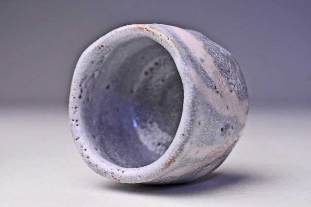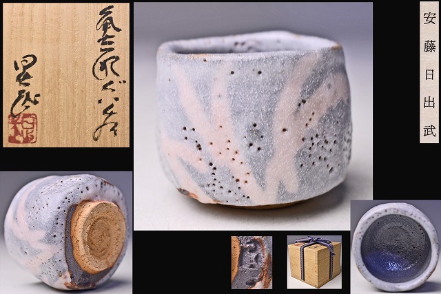 安藤日出武 ★ 鼠志野 ぐい呑 ★ 共箱 栞 ★ 酒器 ★ 淡いピンク色がアクセント ★ 柔らかな色合い ★