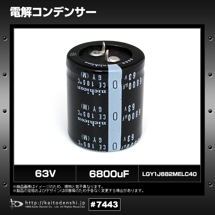 | Kaito7443 電解コンデンサー 63V 6800uF LGY1J682MELC40 [Nichicon] | 2個 |