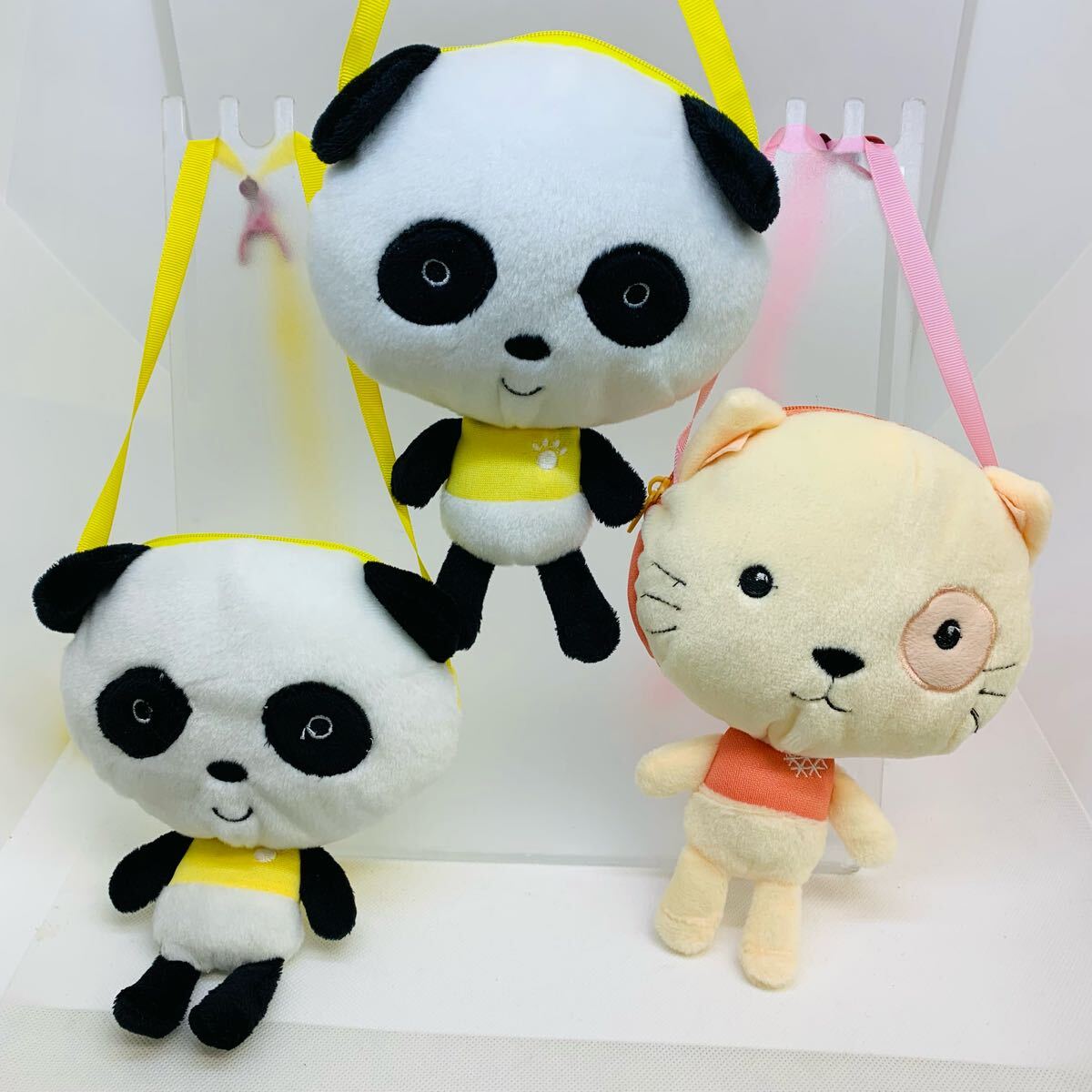 ぬいぐるみポーチ ショルダー 3個セット ☆  パンダ×2 ネコ×1 小物入れ インテリア ポシェット