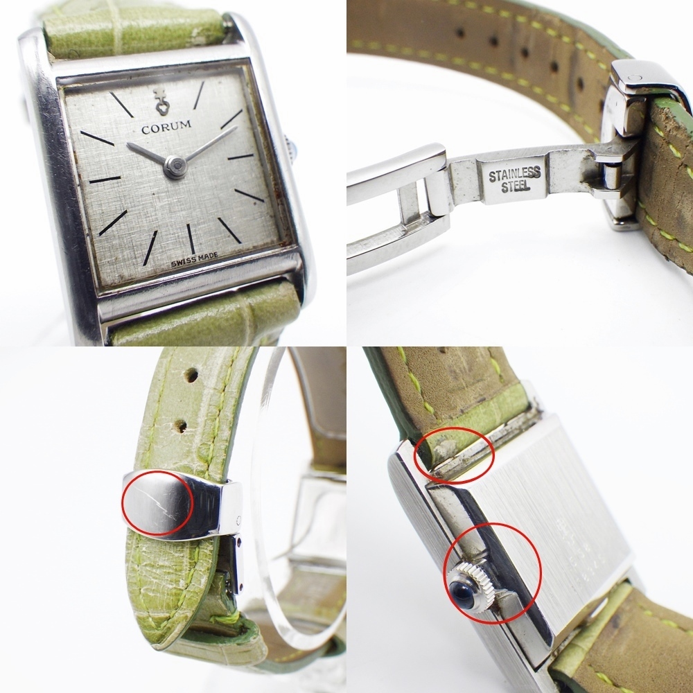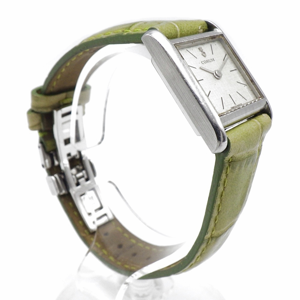 C25-1246 CORUM コルム 15158 手巻き式腕時計 タンクウォッチ スクエア SS グリーン系 シルバー文字盤 レディースウォッチ