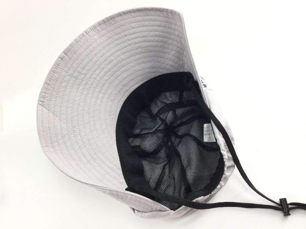 後ろゴム仕様でフィット感抜群、あご紐は取り外し可能で風が強い日も安心。