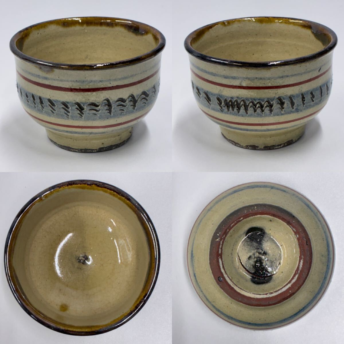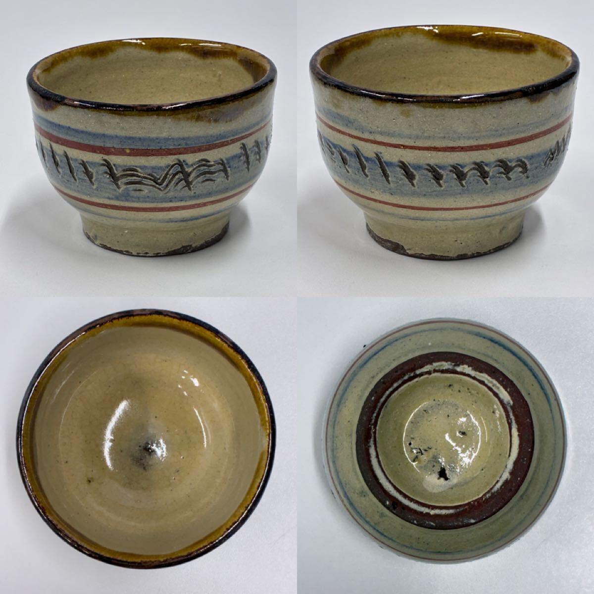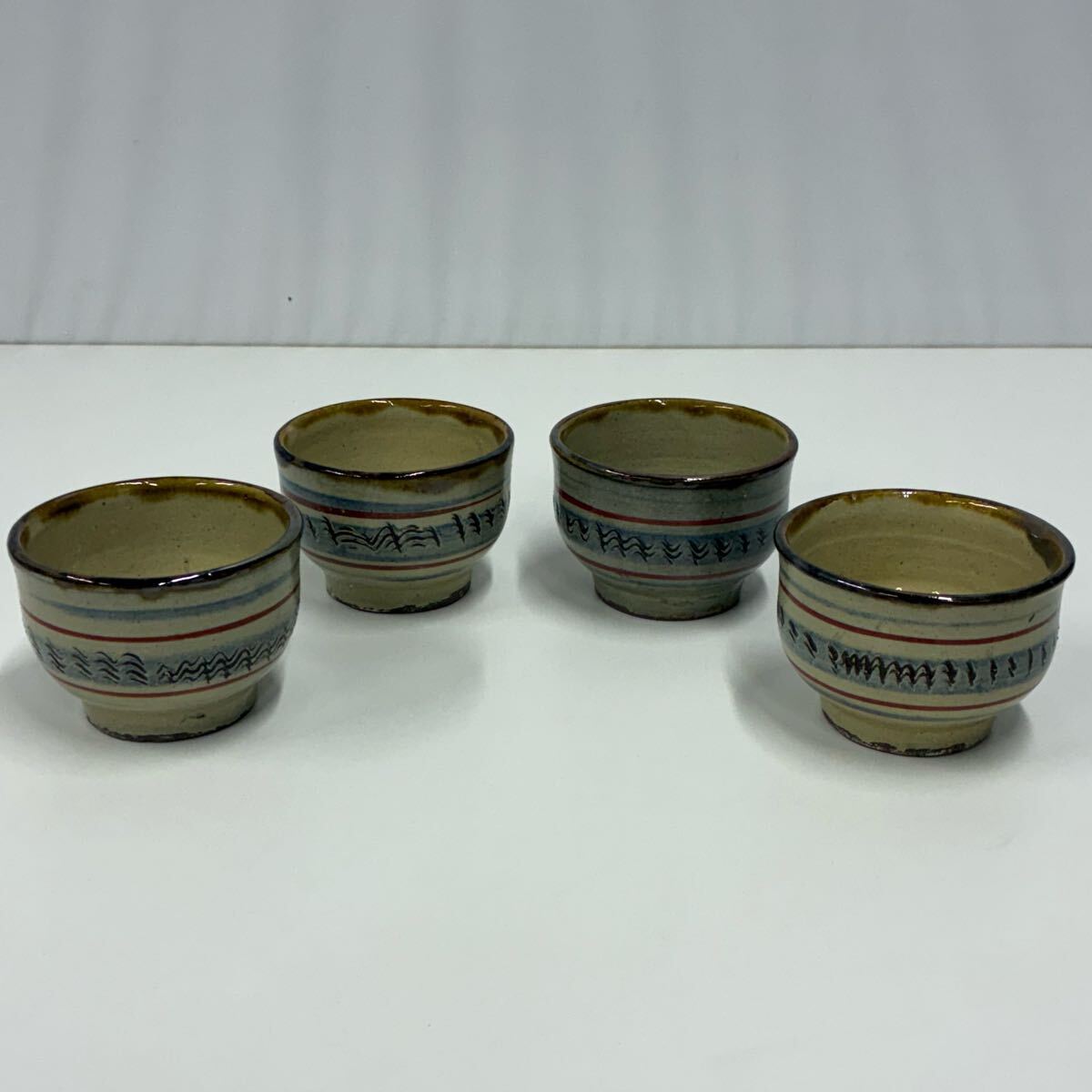 | 壺屋焼 湯呑 4点 径約8.7cm 高さ約6cm (管理番号y-22) |