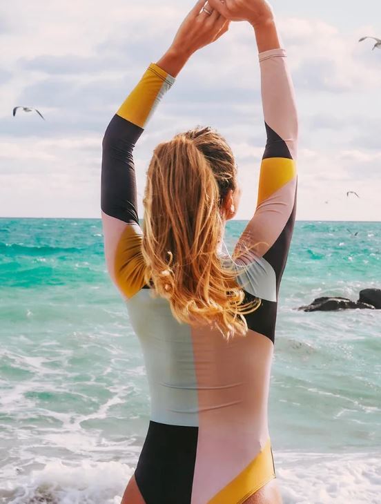 レディース ラッシュガード 長袖 ワンピース水着 パッチワーク ジッパー モノキニ サーフィン ボディスーツ
