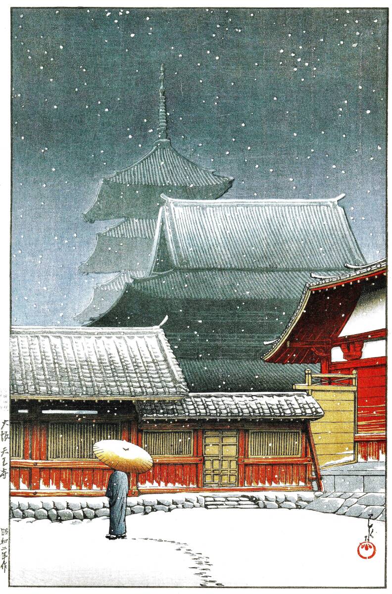 5作品(No68) 川瀬巴水 越前和紙仕上 ①冬の月戸山の原②芝増上寺③大阪天王寺④二重橋の朝⑤伊豆伊東松月院