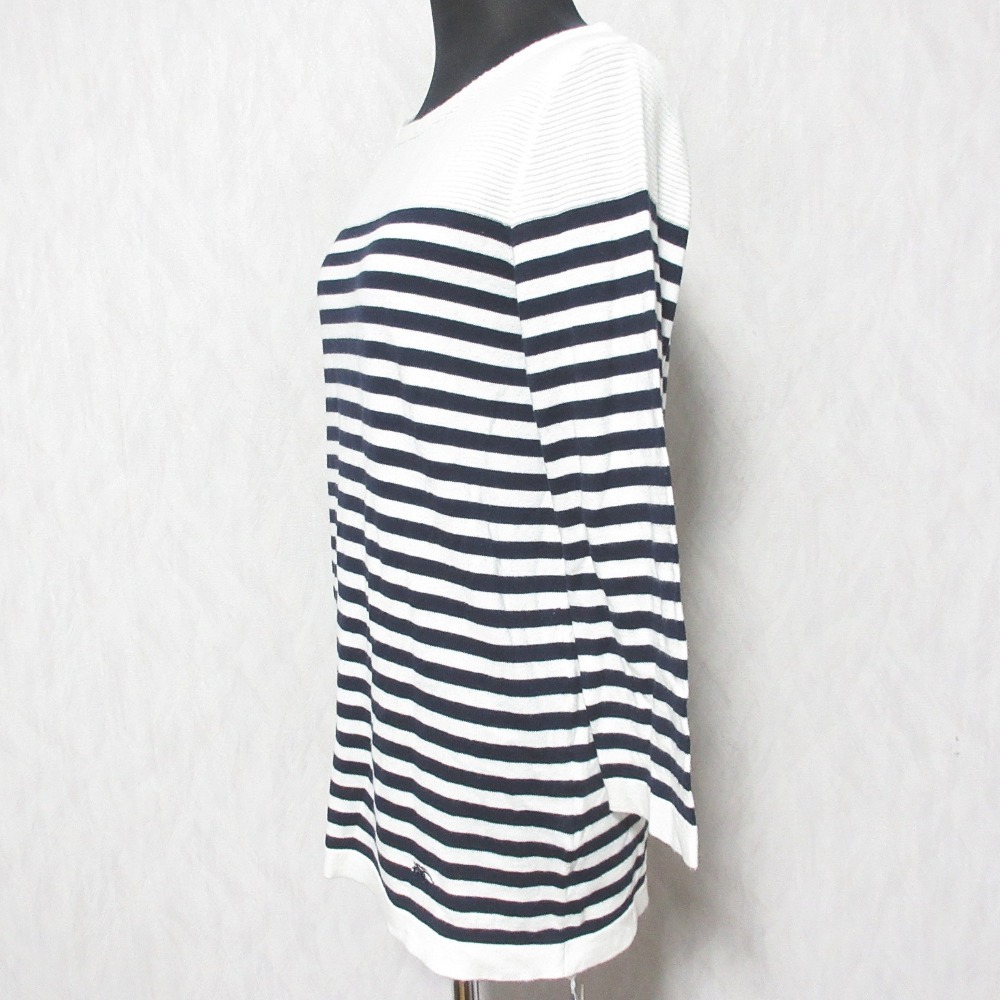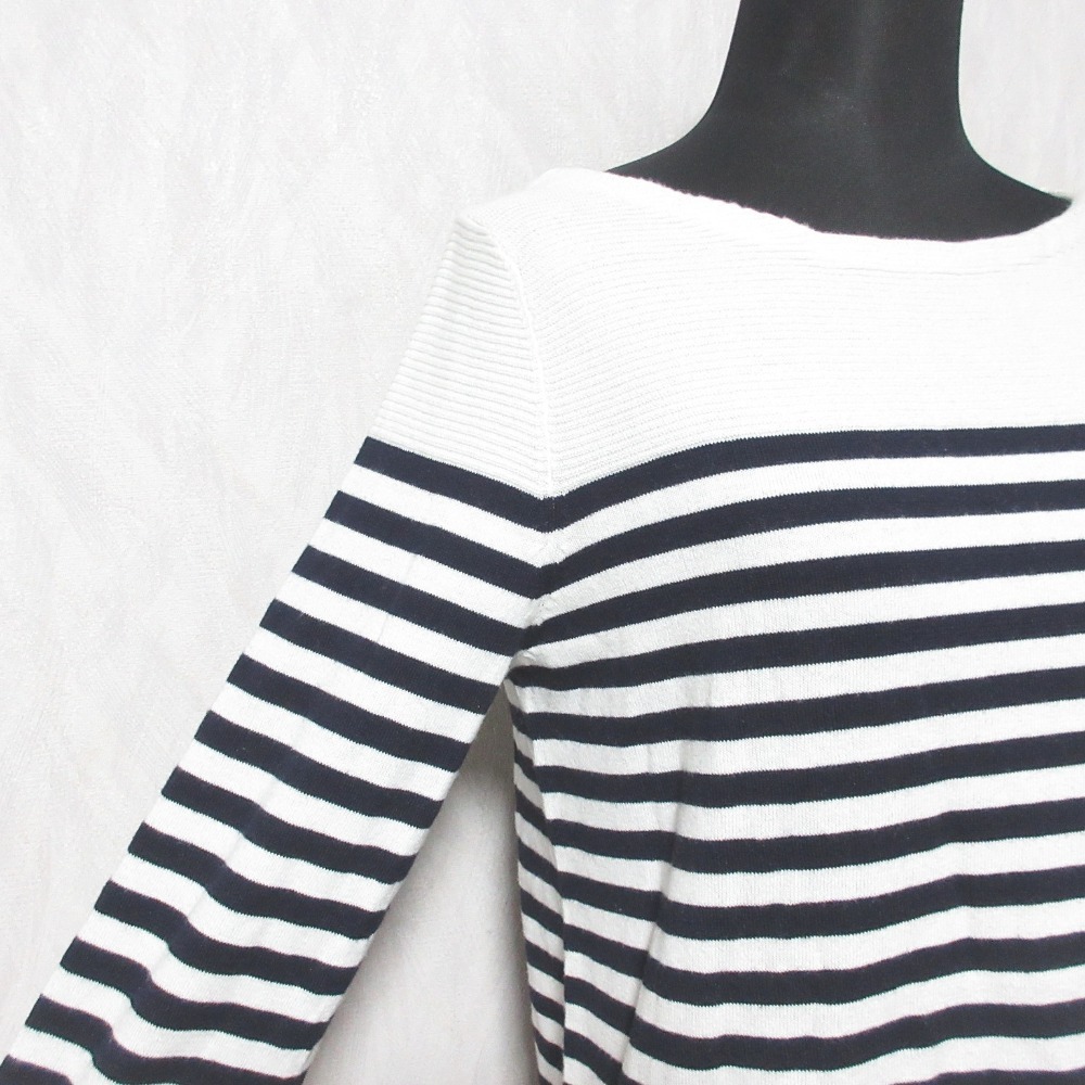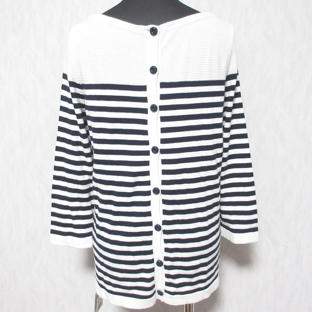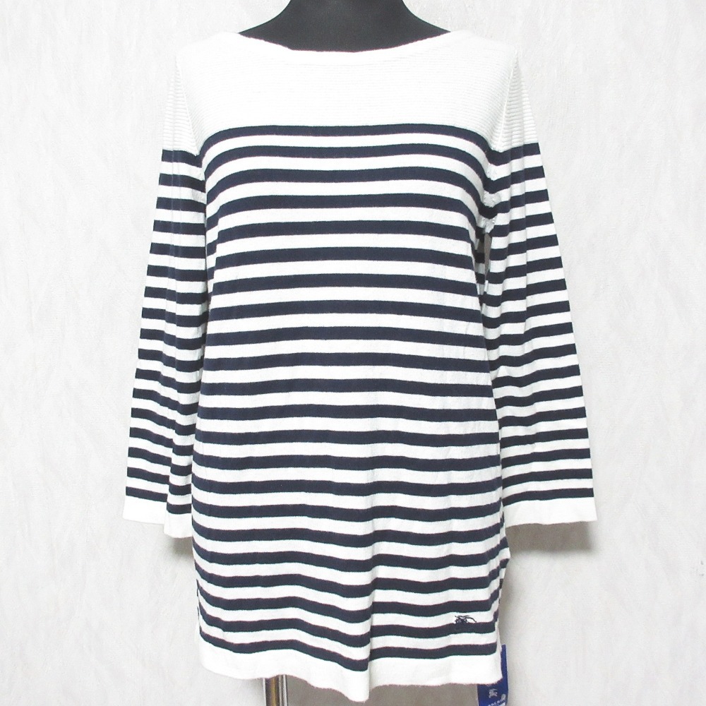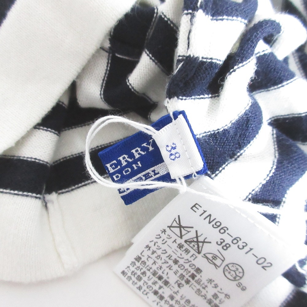 美品 BURBERRY BLUE LABEL バーバリーブルーレーベル バックボタンボーダーニット E1N96-631-02 サイズ38 ホワイト ブラック