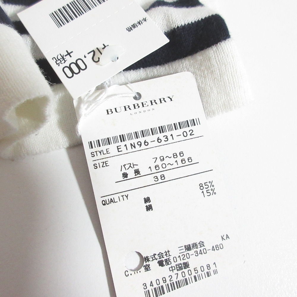 商品名:BURBERRY BLUE LABEL バーバリーブルーレーベル バックボタンボーダーニット E1N96-631-02 サイズ38 ホワイト ブラック