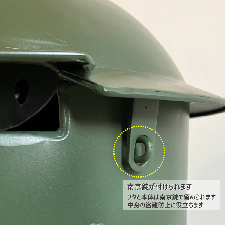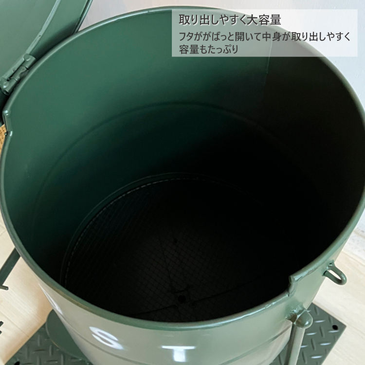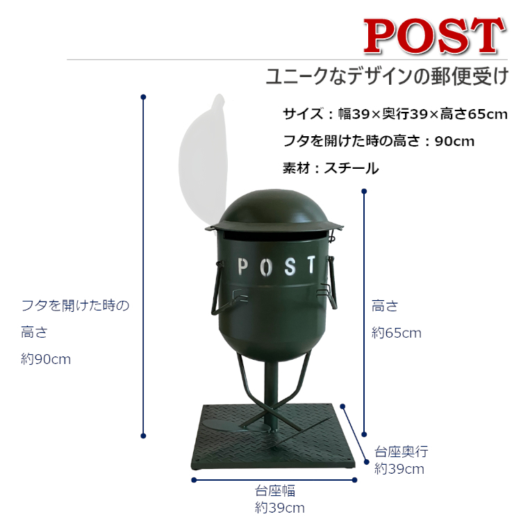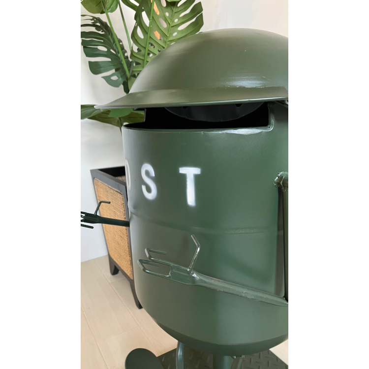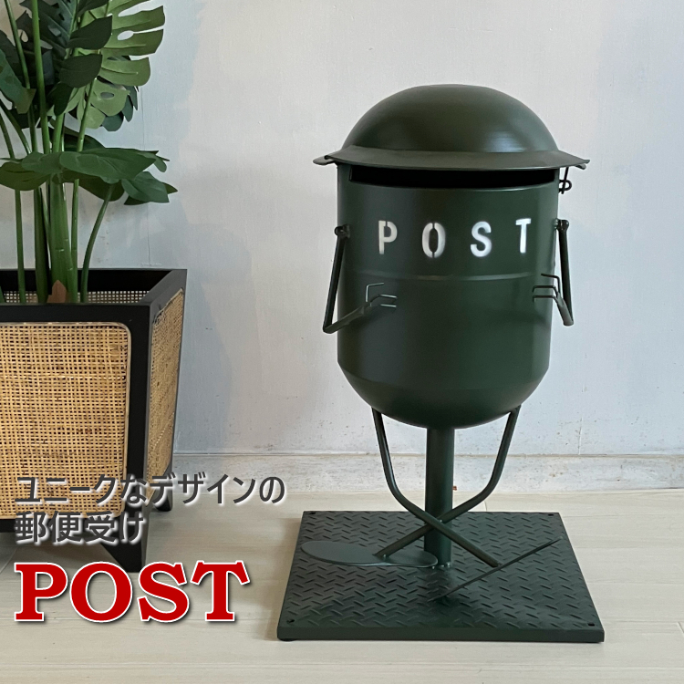 玄関先で目を引くグリーンの郵便受け。大きな口から郵便を受け取り、大容量の本体で収納します。フタががばっと大きく開いて、中身の出し入れもスムーズ。楽しくおしゃれな玄関を演出します。