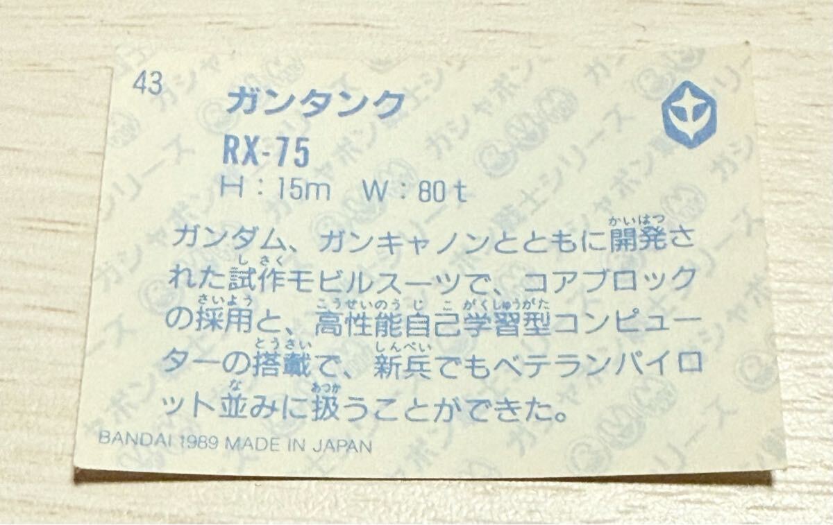 ガンタンク③ シール ステッカー バンダイ ガシャポン ガン消し フィギュア SDガンダム ガチャガチャ カプセルトイ 消しゴム当時物昭和