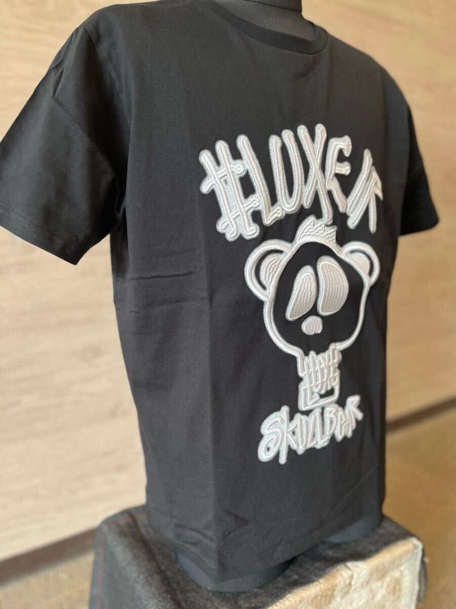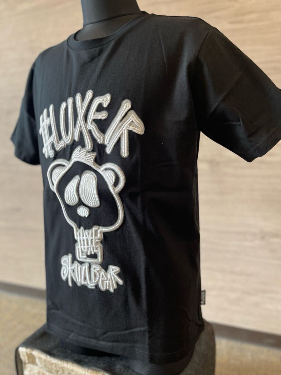 LULUXE/R(ラグジュ)クルーネック スカルベア刺繍半袖Tシャツ ブラック×ホワイト Mサイズ ユニセックス 刺 スカル BEAR