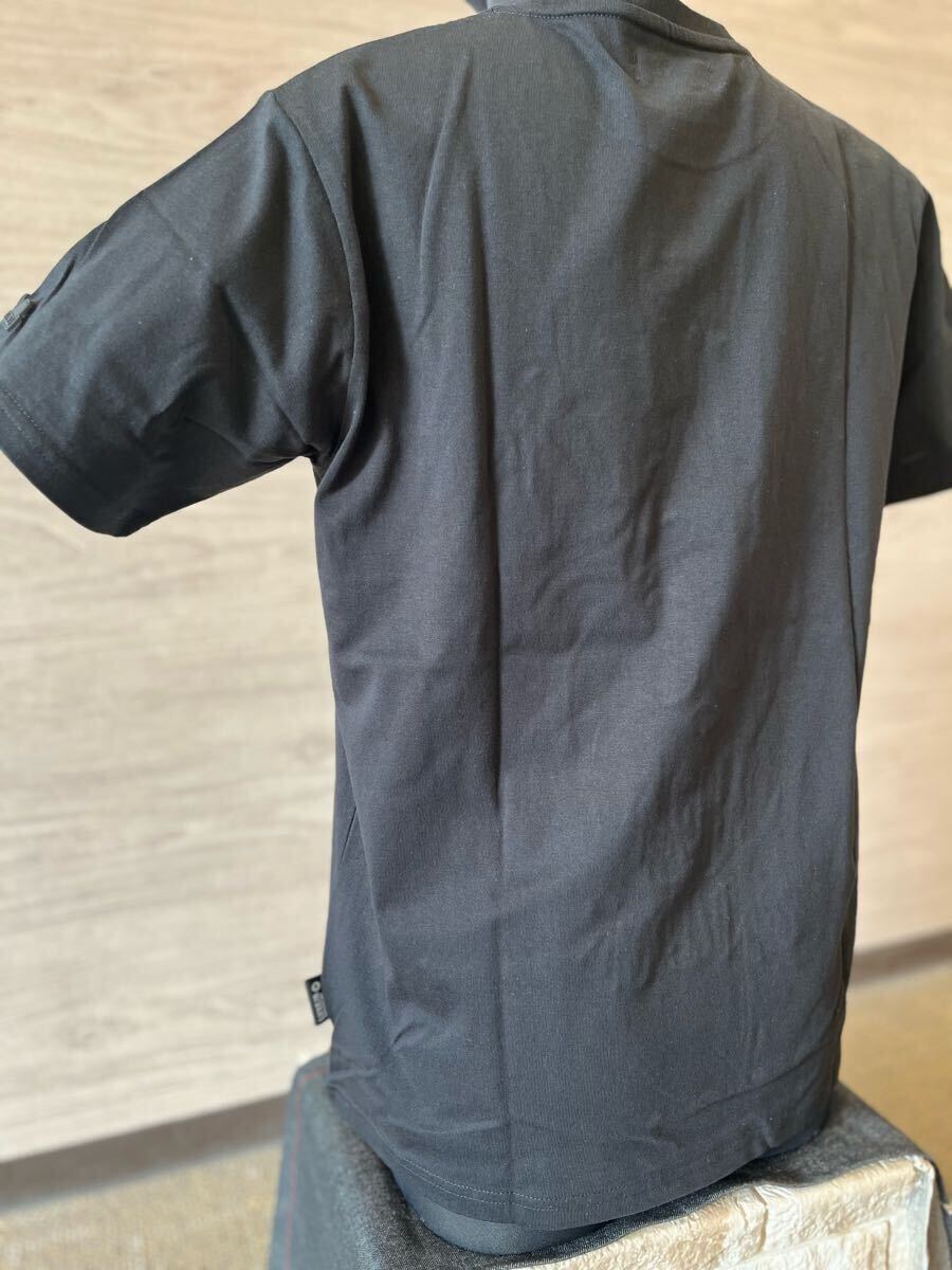 左袖部分にはワンポイントのラバーワッペンを配置してアクセントに。