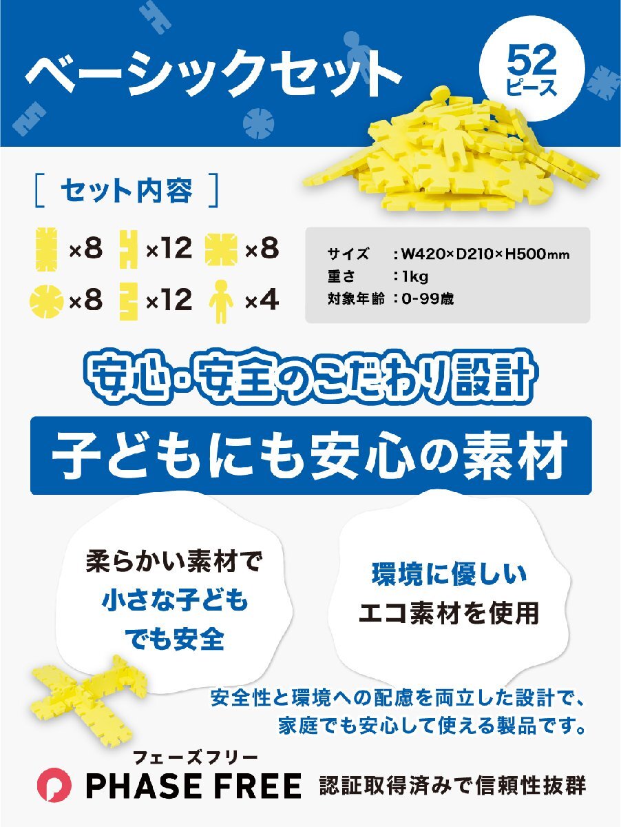 軽くて丈夫なEVA素材を採用。ビート板のような質感で触り心地も抜群!遊びながら創造性を高め、規則性を体感して