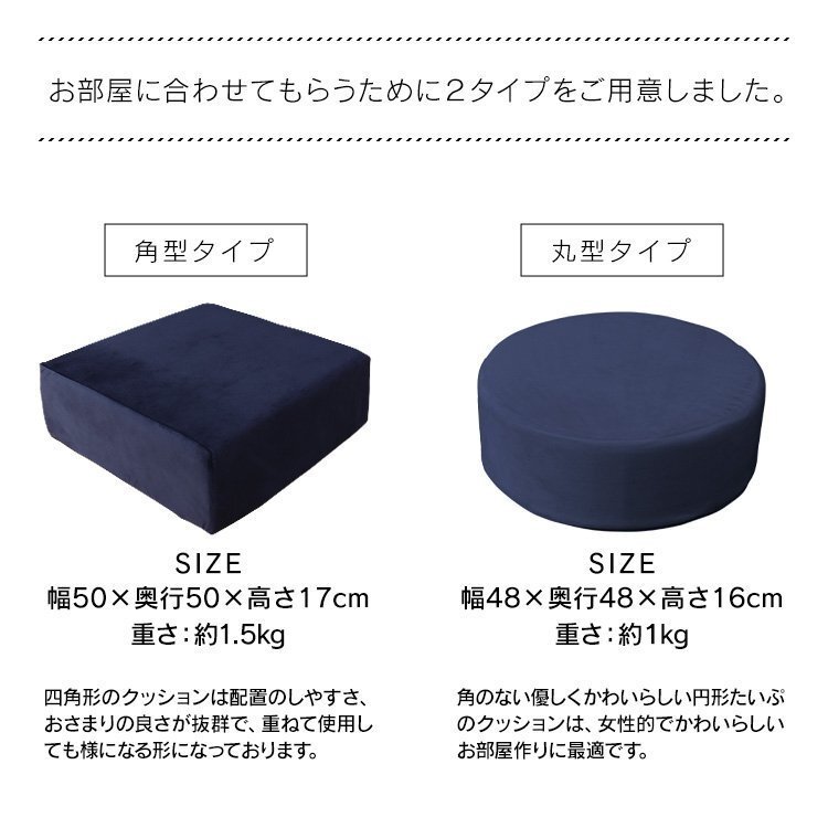 | 「低反発」と「高反発」という2つの素材を使用し 抜群の座り心地を実現した、ハイブリットクッション!! 身体を包むようにフィットする低反発ウレタンと 高い弾性でしっかりと支える高反発ウレタン。 2つの素材の長所を生かした、2層構造は長時間使用しても疲れにくく ヘタリや底つき感を感じさせない快適な座り心地。 カラー4色、形も2タイプあるのでお部屋の雰囲気に合わせて お部屋をコーディネートを楽しめます♪ ■商品コード:FJB001NA ■商品仕様 カラー:ネイビー タイプ:角型 サイズ: 角型タイプ:(約)50cm×50cm×17cm 重量: 角型タイプ:(約)1.5kg 素材:ベロア調 ■注意事項 ・カバーを洗濯する際は、必ず洗濯ネットをご使用ください。 ・生産ロットが違う場合、柄・色味が若干変わってくる場合がございます。 ・商品は、モニターによって色合いが異なって見える場合があります。 ・仕様・デザインは改良のため予告なく変更することがあります。 ■保障期間 7日間 ※商品到着後7日以内の初期不良・破損のみご対応させていただきます。 【新品未使用品です】 |