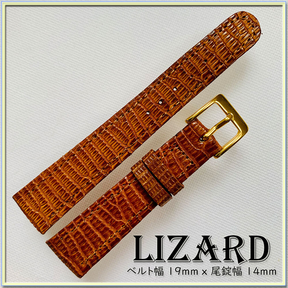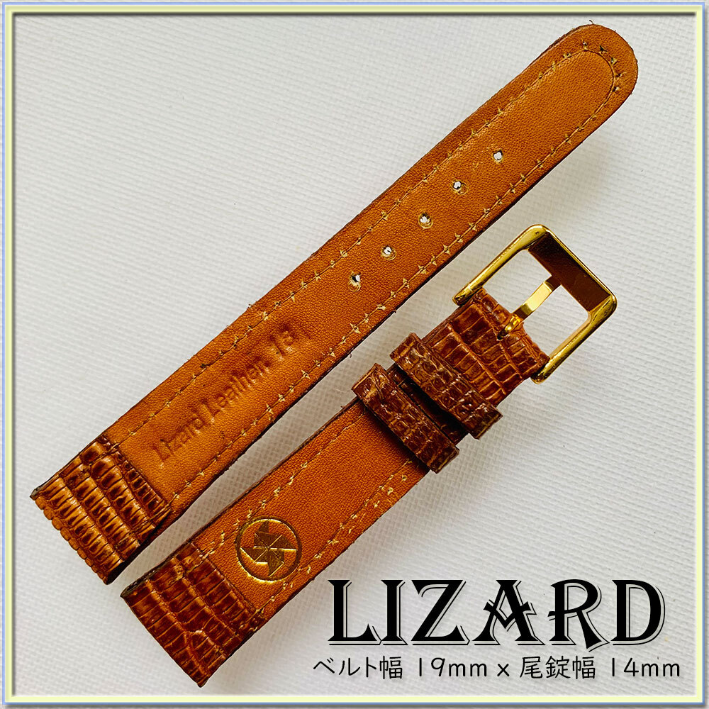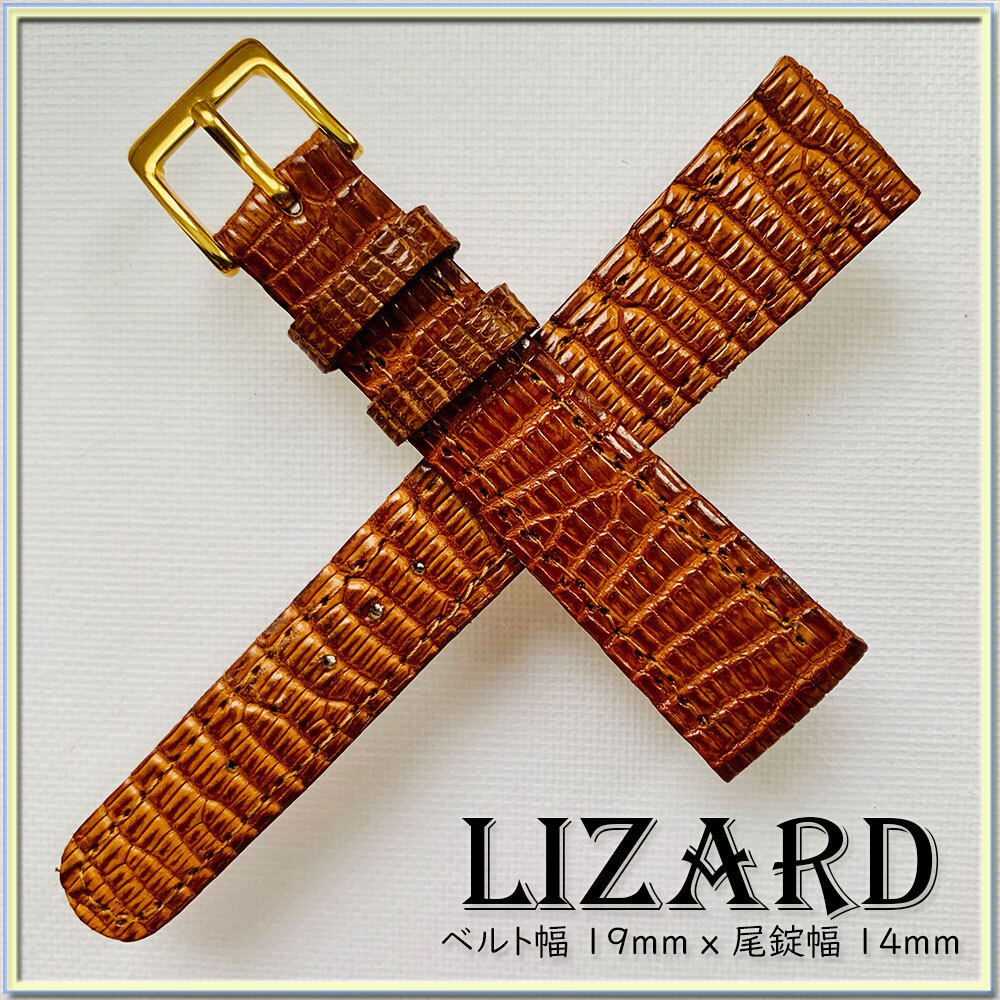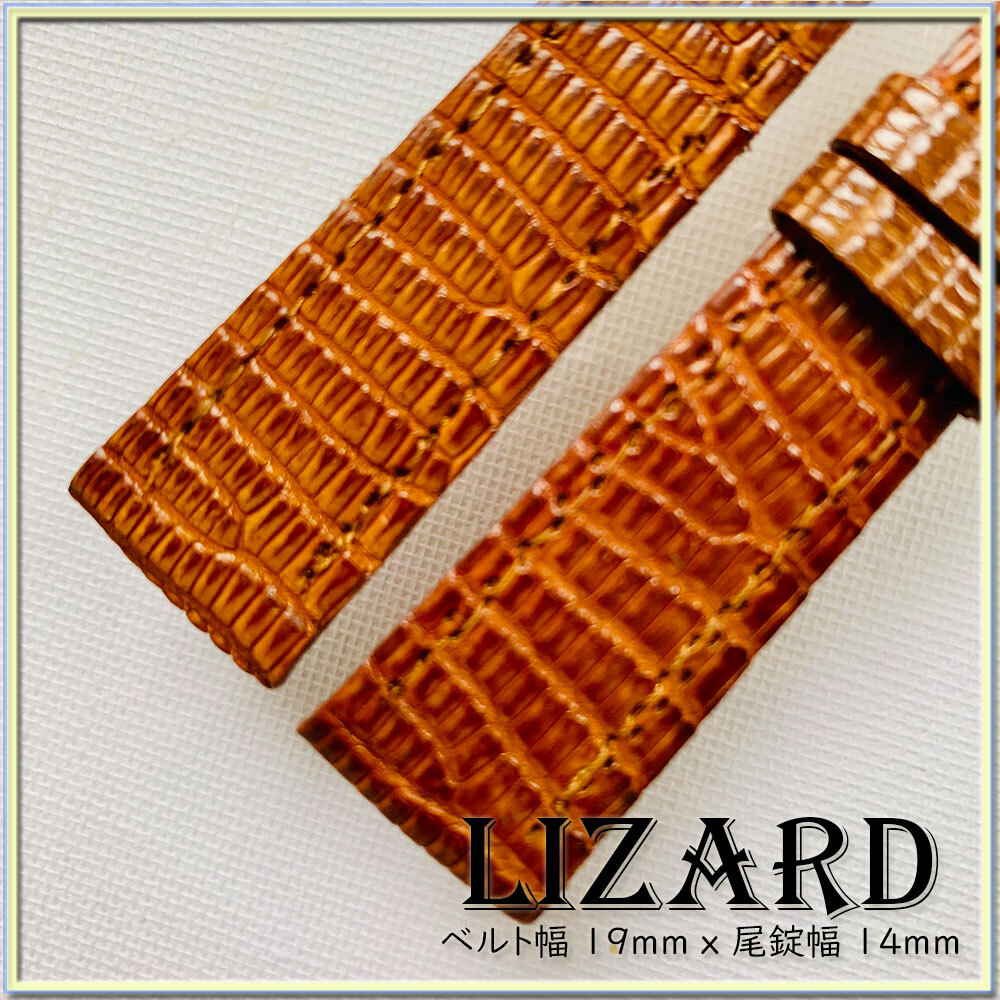 SALE!19mm リザード 本革 トカゲ革 高級ライン 1点物 別注 イタリアンブラウン 天然模様 時計ベルト 職人技 限定 HANDMADE GOLDBUCKLE