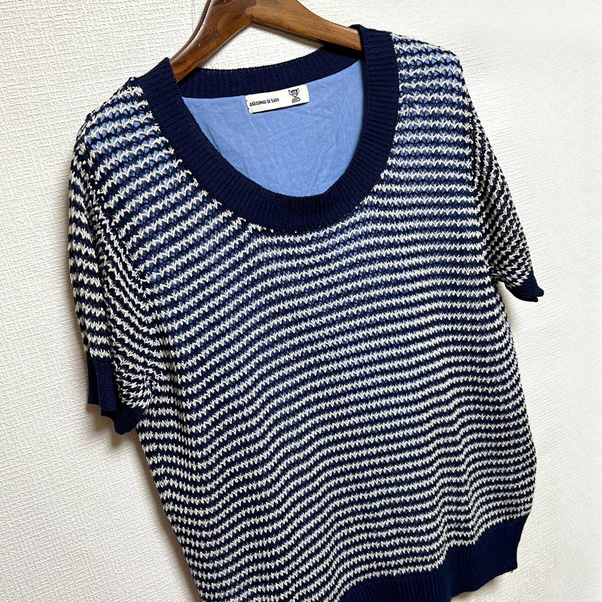 アズノゥアズ ドゥバズ as know as de base ニットカットソー サイズ※ ネイビー系 レターパック可 (892916) *商品説明* ・表記サイズ: ※ 実寸サイズを参考にして下さい。 ・色: ネイビー系 ・素材: 麻55%、レーヨン45%、 ・実寸サイズ(単位cm): 肩幅42、胸囲57、着丈62、袖丈24、 *平置き採寸となります。 ・商品状態: 多少の使用感はございますが全体的に状態は良好です。 購入はご了承頂ける方へお願い致します。 | ||||||||