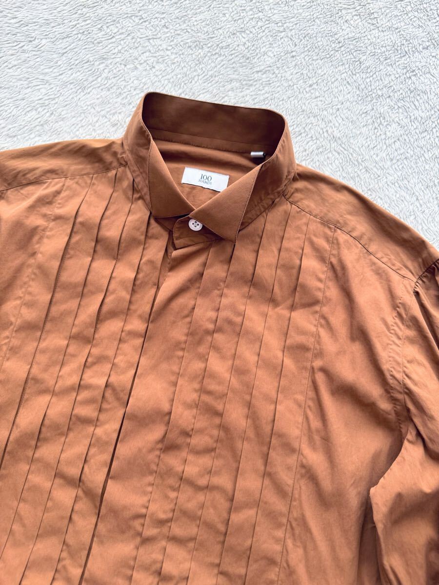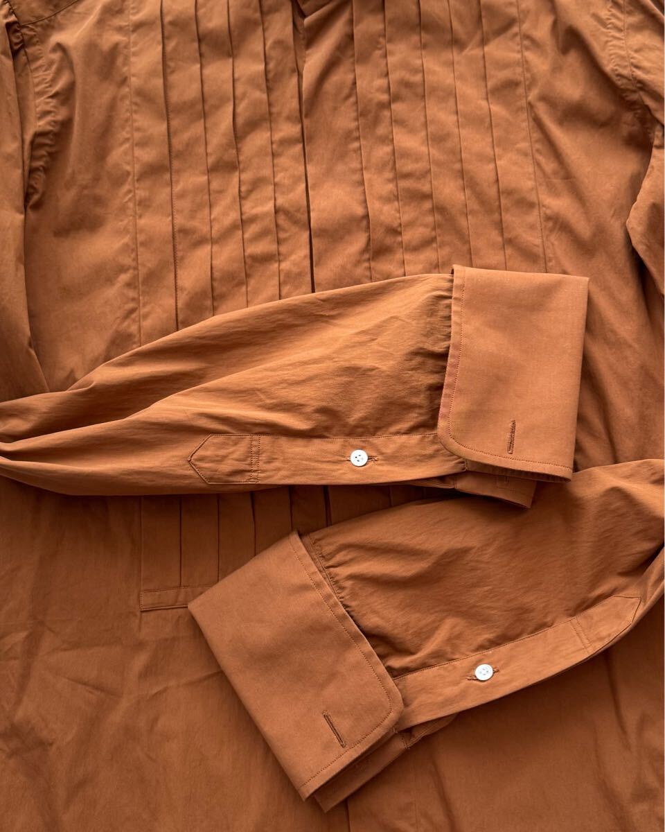・風合いの良い上質な生地を使用し計算されたシルエットにウィングカラーやプリーツ、ダブルカフスなどのクラシカルなディテールが雰囲気抜群でとてもお洒落なドレスシャツになります。
