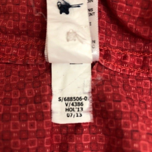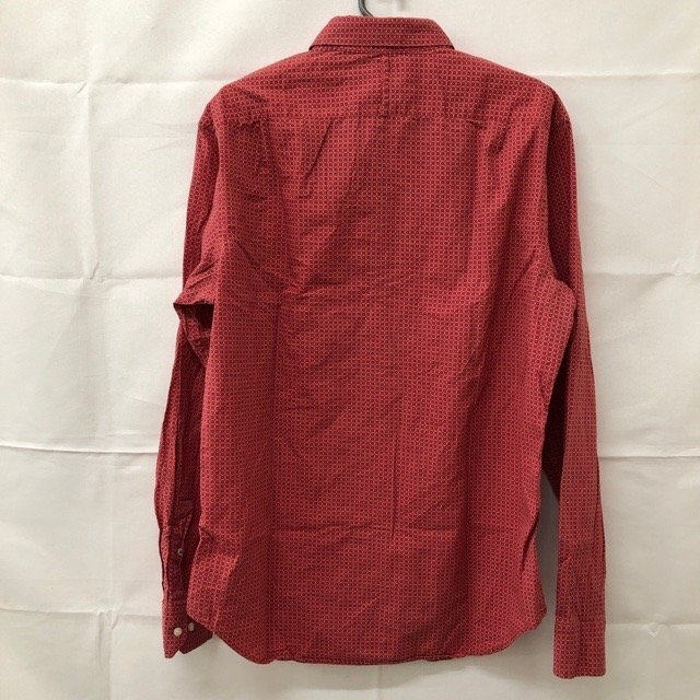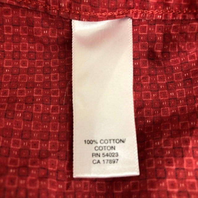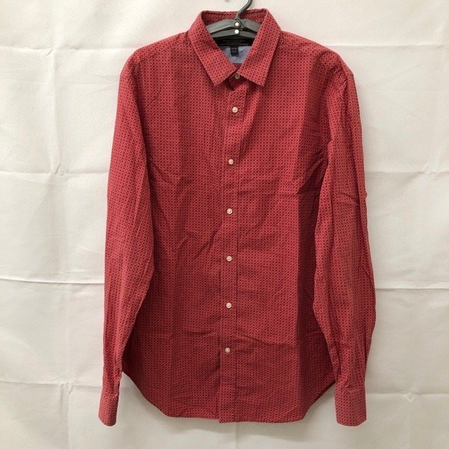 J198 バナナリバプリック M アメリカ古着 コットン 長袖シャツ 襟付き ボタン留め 総柄 レッド系 BANANA REPUBLIC メンズ