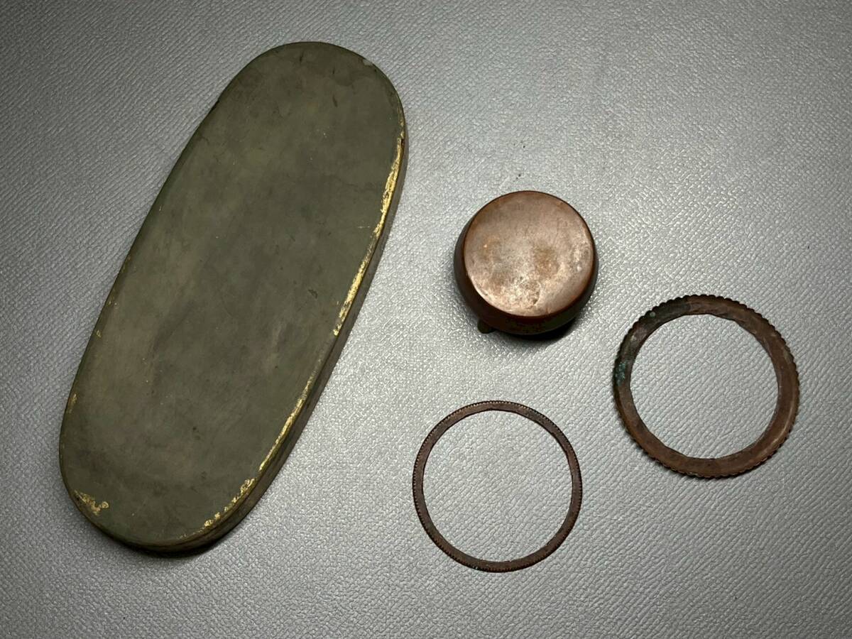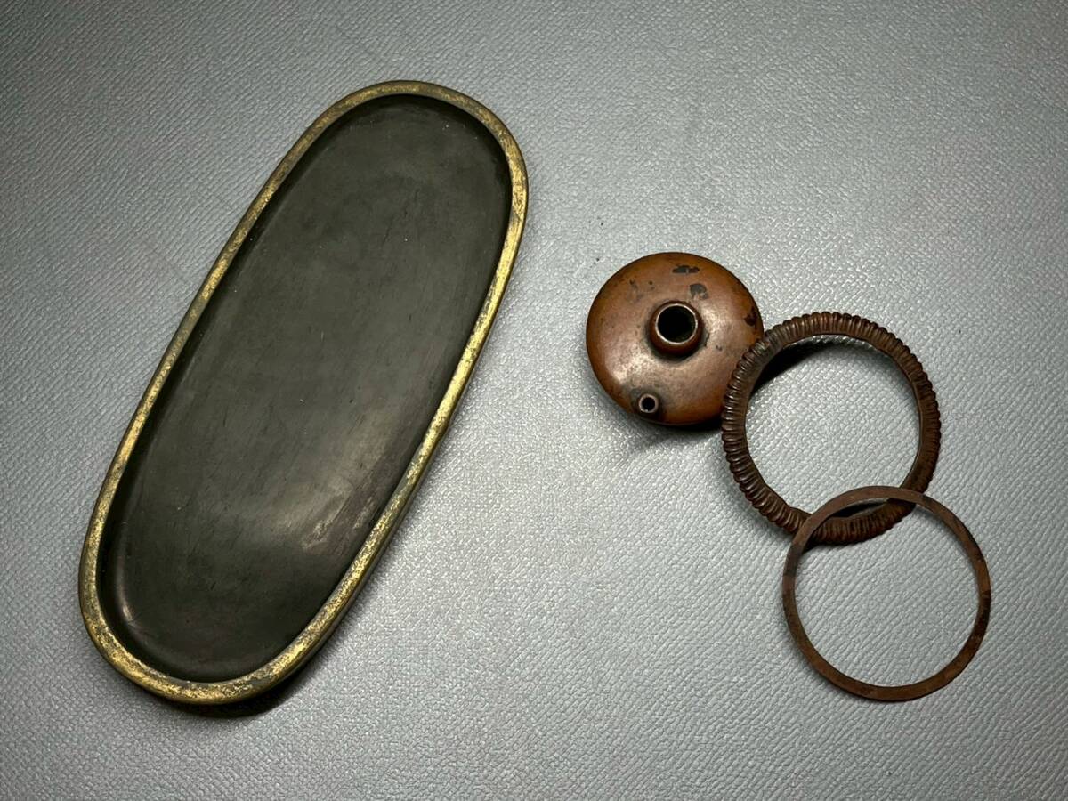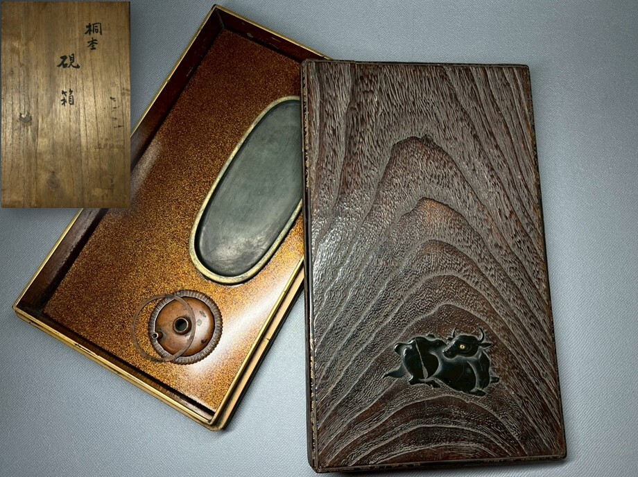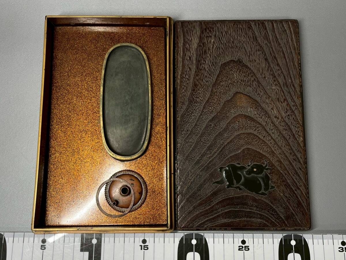 ●希少 桐杢 硯箱 牛 丑 文房具 書道具 古美術 骨董 文箱 日本伝統工芸品 時代物 置物 飾物 芸術 ヒビワレあり ■本体サイズ:横幅 13.5cm/縦幅 22.5cm/厚み 3.5cm ※素人寸法の為、若干の誤差はご了承ください。 ■状態につきましては経年に伴うスレ・汚れ・小キズ などが見られます。 ※その他の細かな状態は写真にてご確認・ご了承の上 ご入札くださいませ。 ●こちらの商品などは時代物や古いお品・骨董品となり ますので、細かな状態を気にされる方・神経質な方の ご入札はご遠慮くださいませ。【ZZG】 |