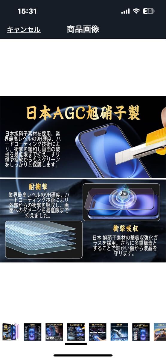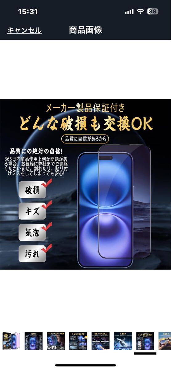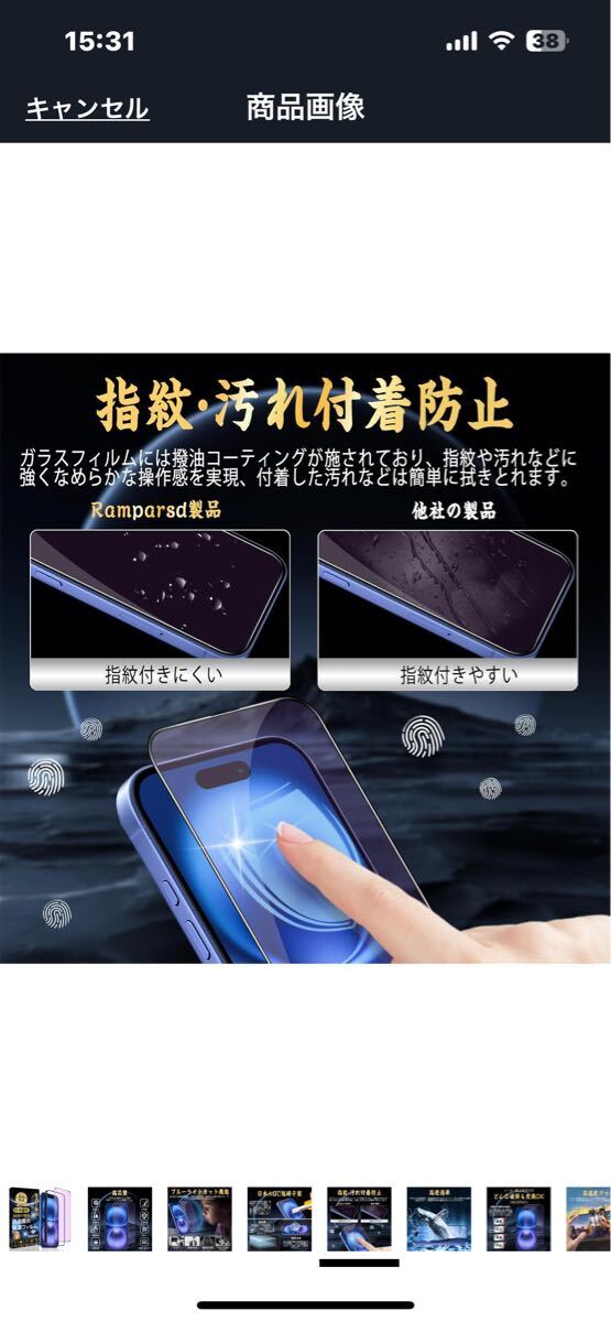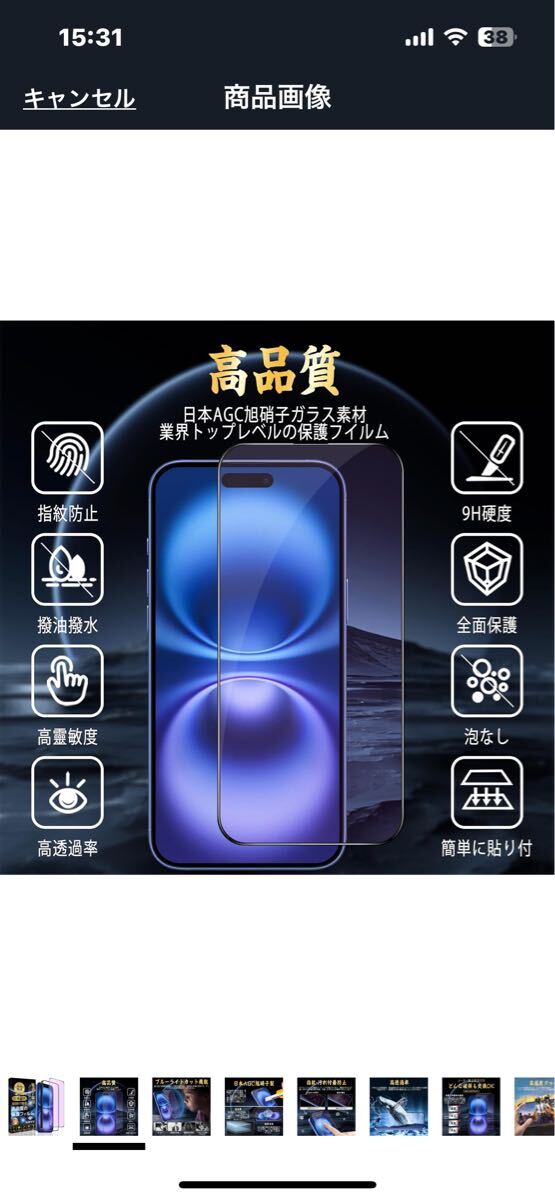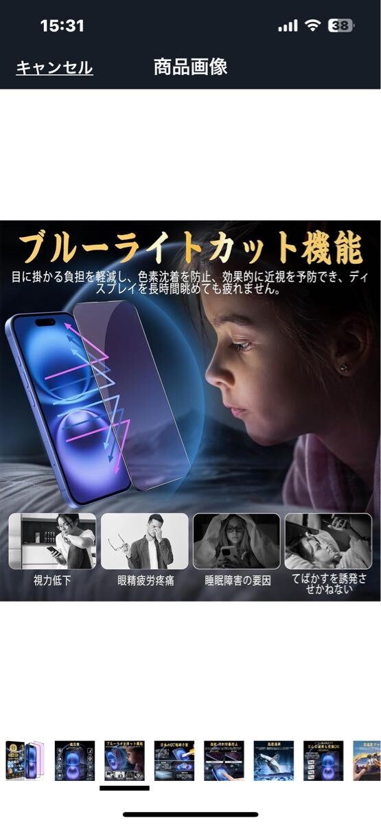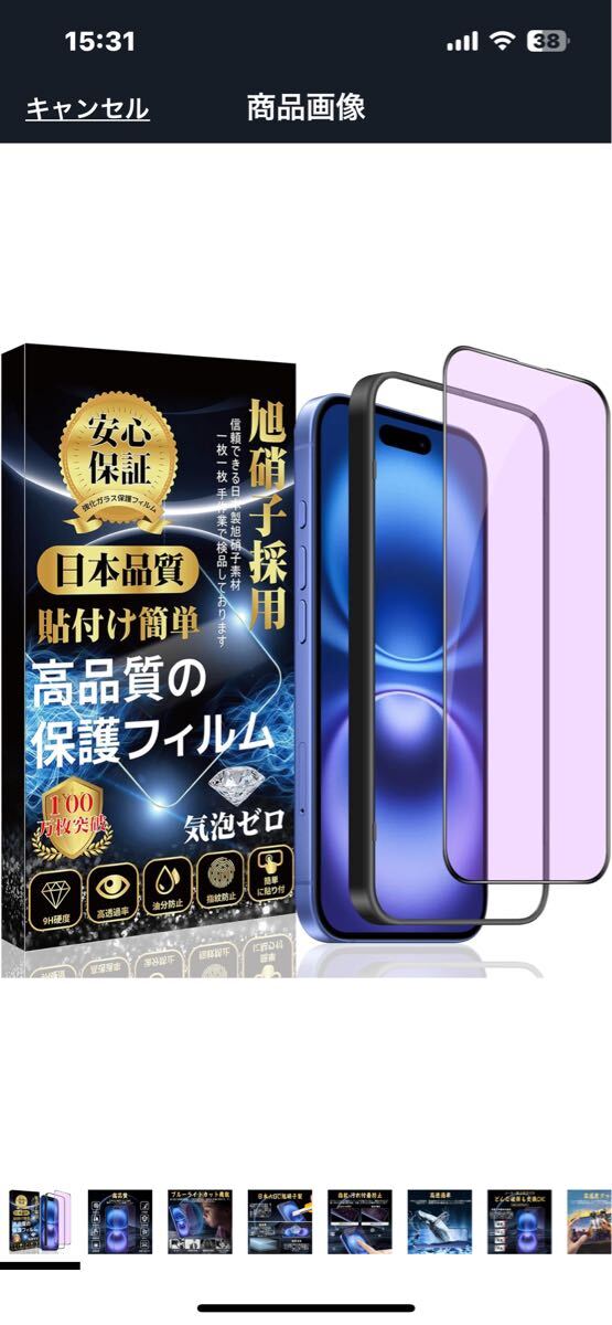 f481 iPhone 16 対応 ガラスフィルム ブルーライトカット【目の疲れ軽減 ガイド枠付き】旭硝子素材製 硬度9H スクラッチ防止 ( 1枚入り)