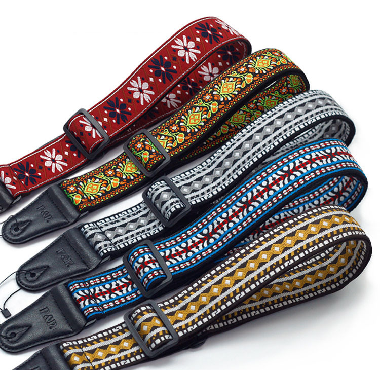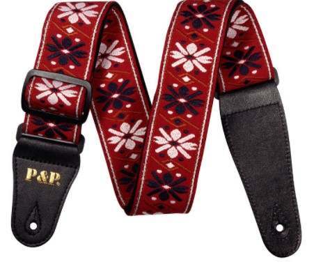 ★P&P MUSIC★ギターストラップ★赤★ジャカード織★エレキギター/ベース/アコースティックギター用ストラップ★新品