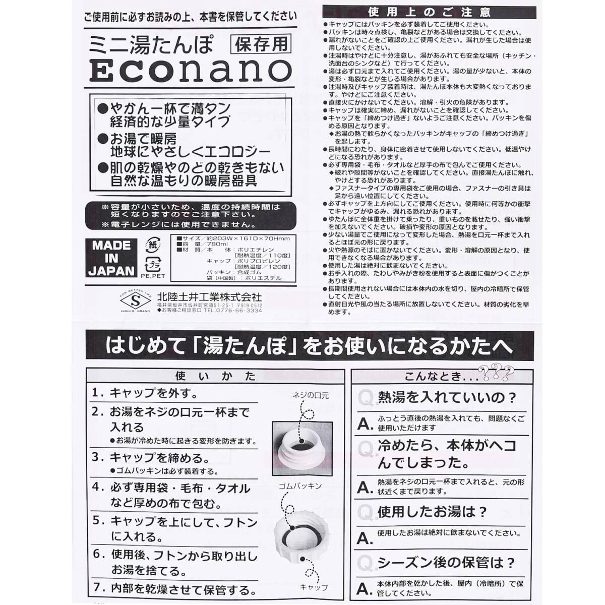土井金属化成 mini 湯たんぽ エコナノ 780ml ピンク 223309