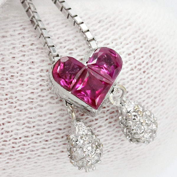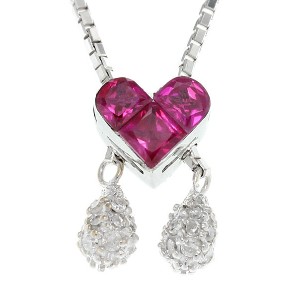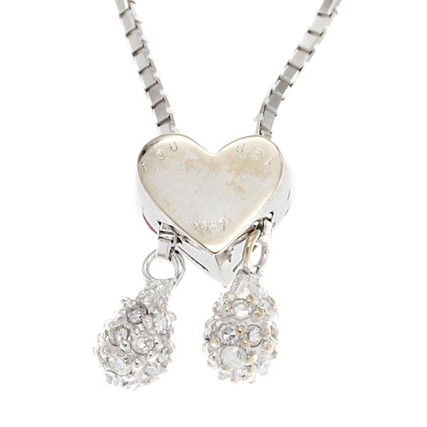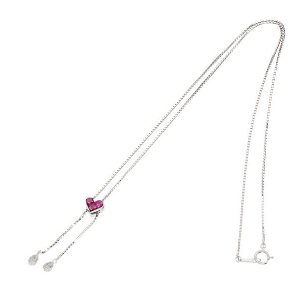 K18WG ハートモチーフ ルビー ダイヤモンド ネックレス 45cm R1.30ct D0.24ct ホワイトゴールド750 宝石 ジュエリー 女性 レディース