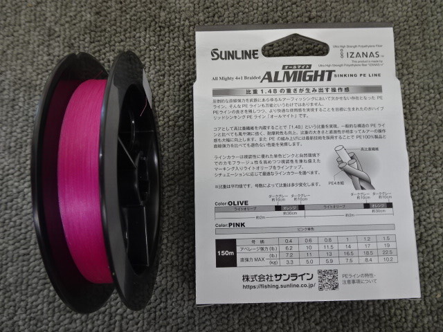 (K-7486)★新品★ サンライン オールマイト 0.4号 150m ピンク シンキングPEライン.
