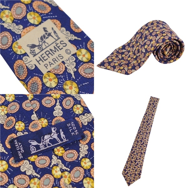 | 美品 エルメス HERMES ネクタイ 総柄 シルク メンズ フランス製 マルチカラー |