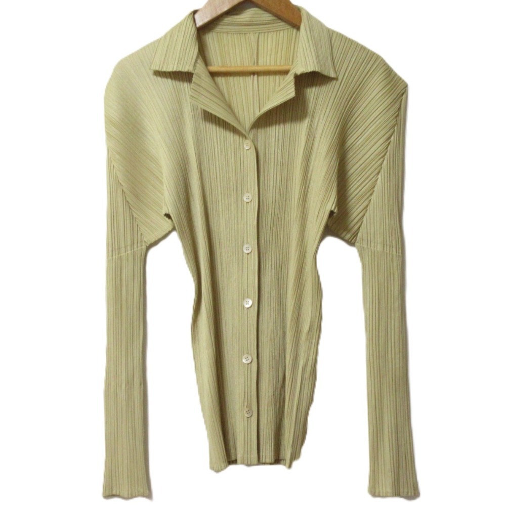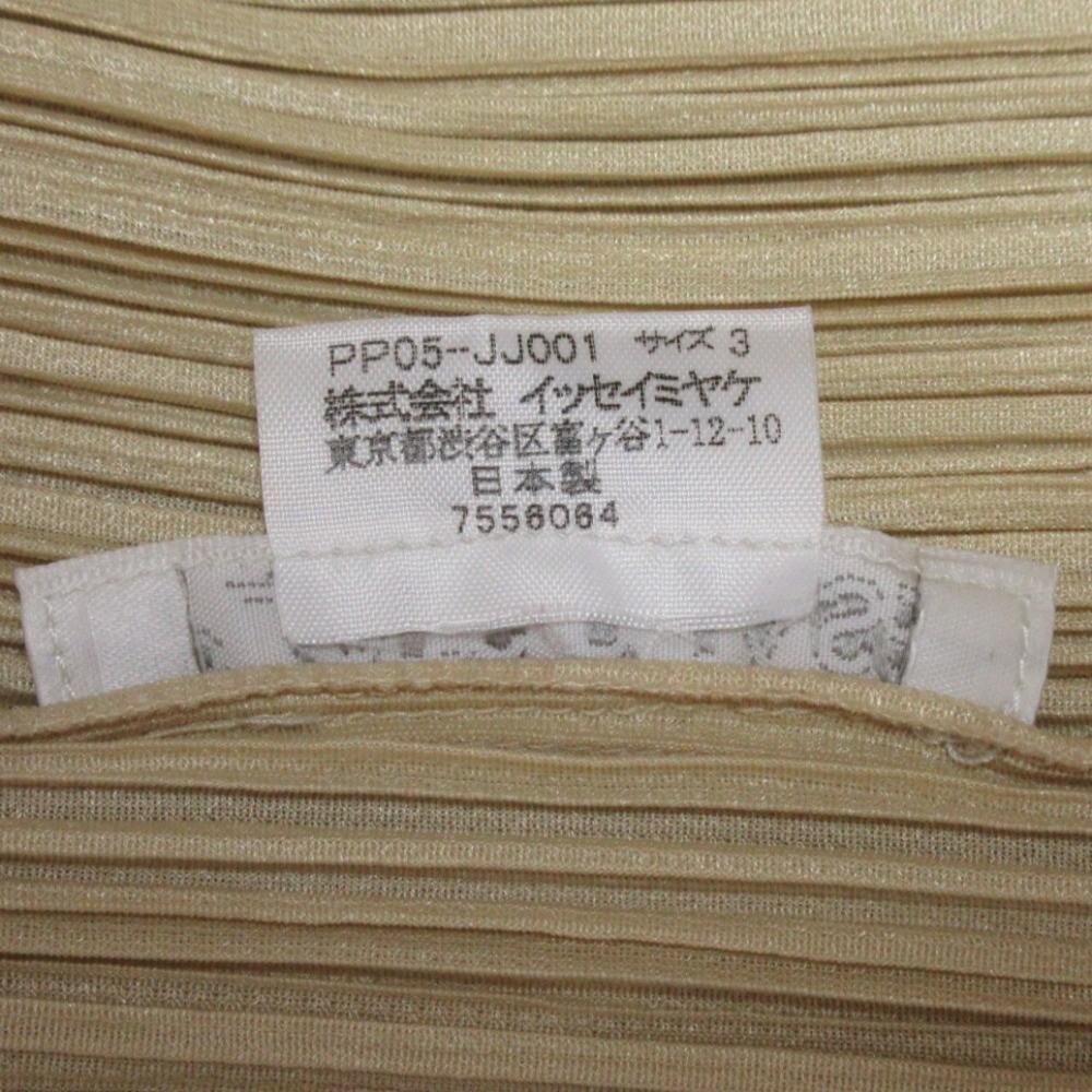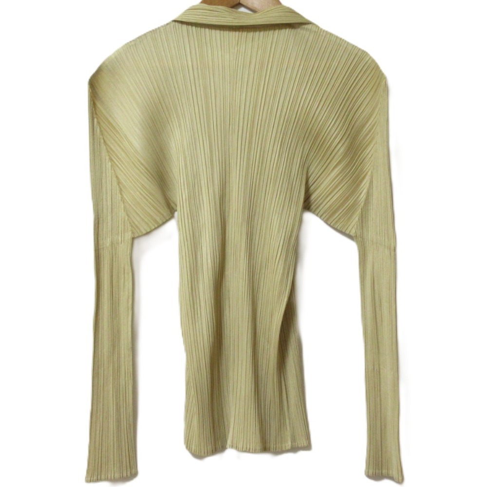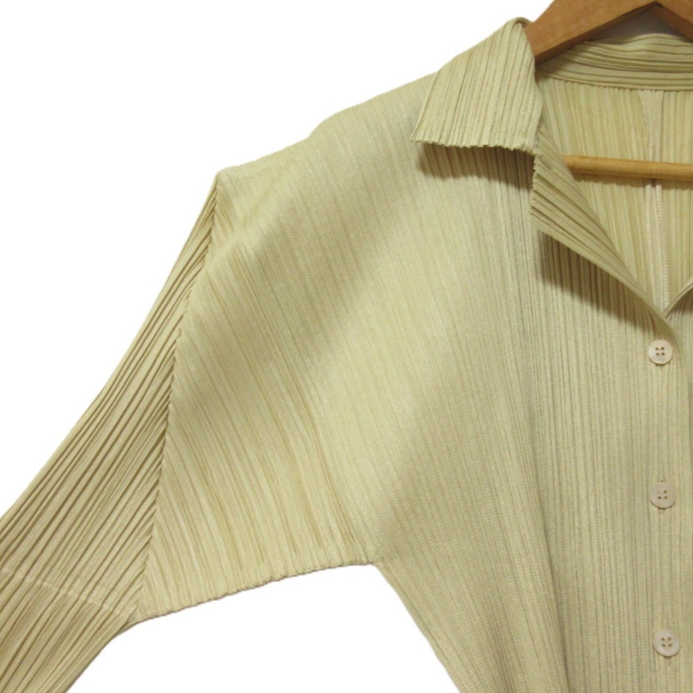 商品名:PLEATS PLEASE プリーツプリーズ イッセイミヤケ 開襟 オープンカラー 長袖シャツ ブラウス PP05-JJ001 サイズ3 ベージュ